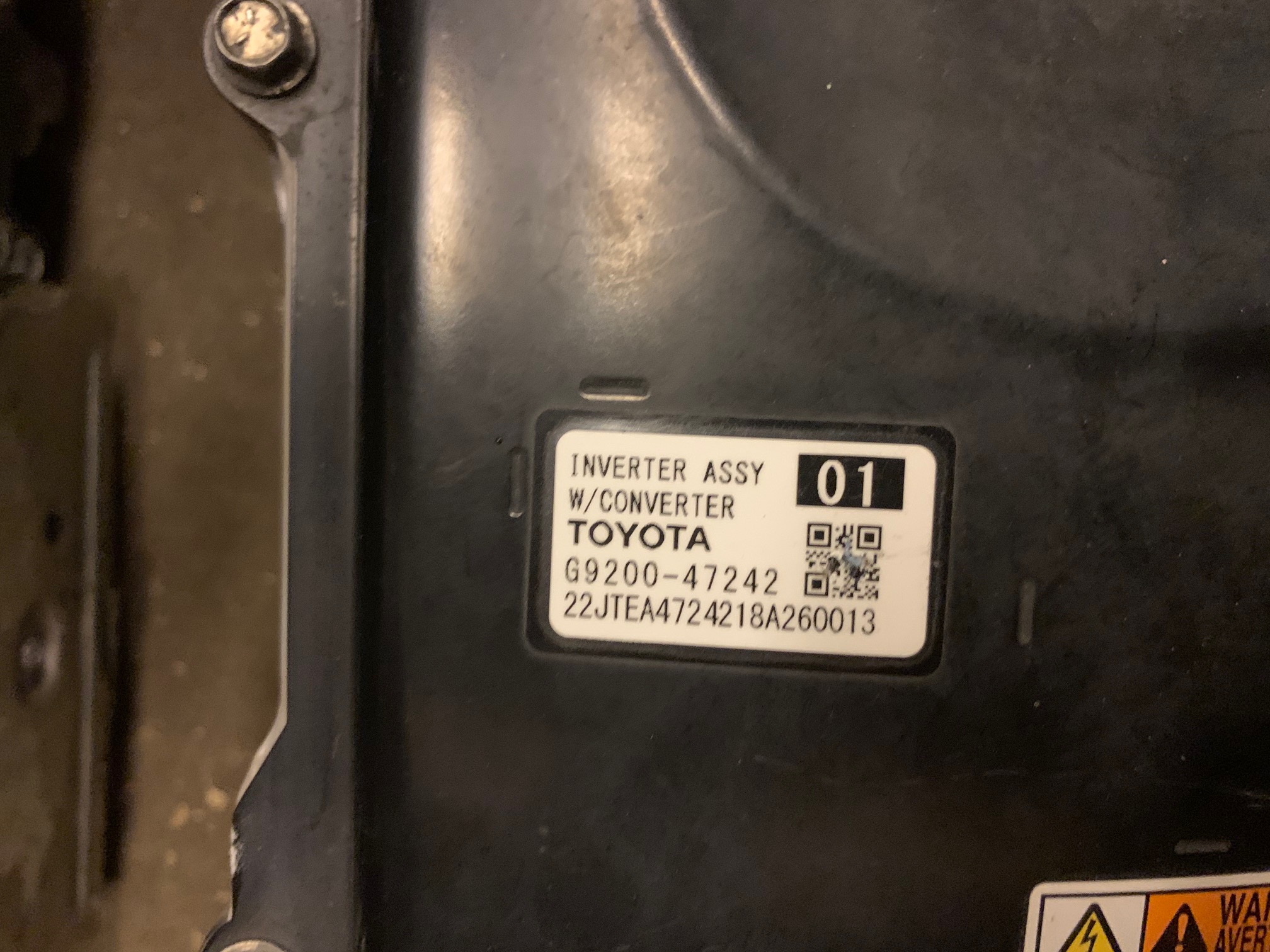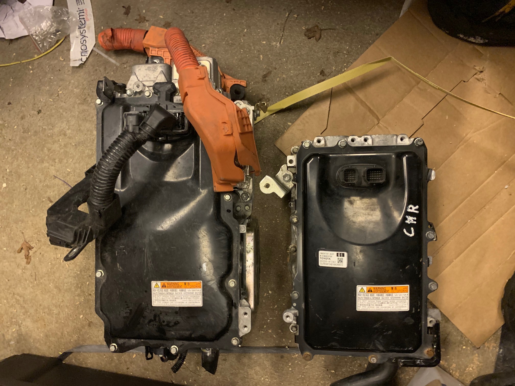This Prius unit is small enough to possible use on the 2 and 3 wheel EVs I'm working on. Toyota has proposed since ~2013 to produce an even smaller unit based on SiC semiconductors(like Tesla uses now). Damian, what is the part number(G9200-XXXXX) of the one you have? Is it one for a Prius Prime, the plug-in hybrid model, or the regular non plug-in hybrid? After a second look, It seems the label on the one you have has been drawn over.
