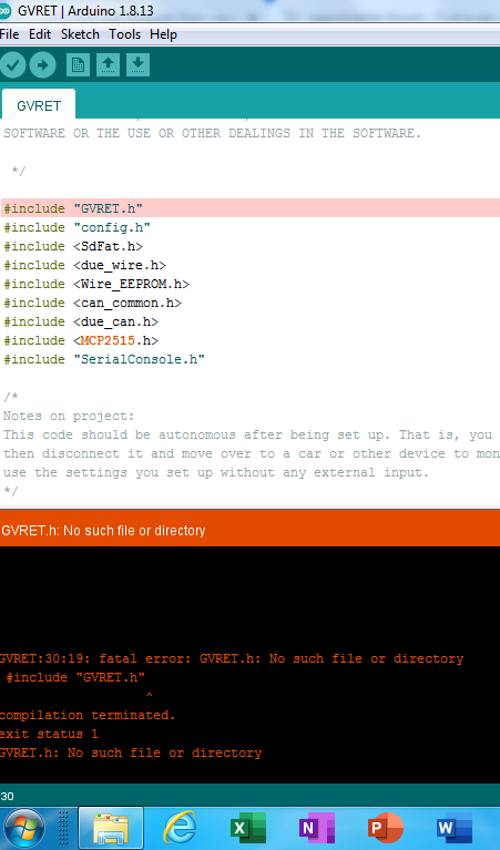 But I get grvet.h missing error, but I have that file installed. (came with the gvret download)