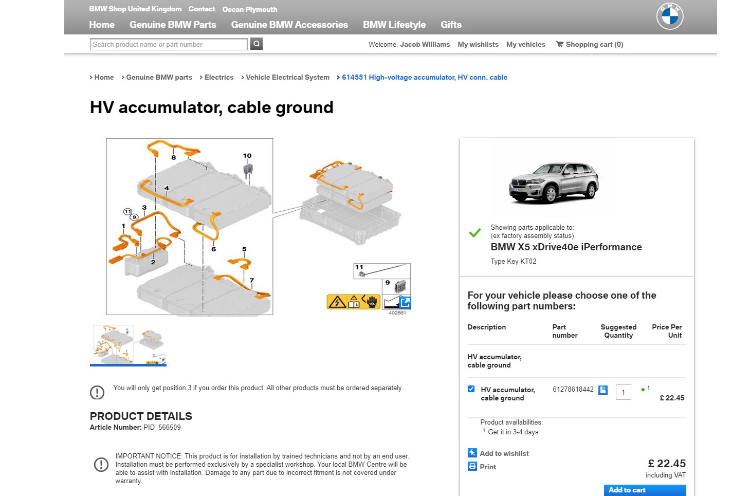 It's worth checking the BMW website, I had to buy another cable to go between modules and it was very reasonably priced at £23. Pretty much every part of the battery pack is available except the modules themselves. I'm normally a VW guy, but I have to say I am very impressed with BMW for this service. I cant think of any other brands enabling or even allowing the general public to order specialist HV parts directly online?