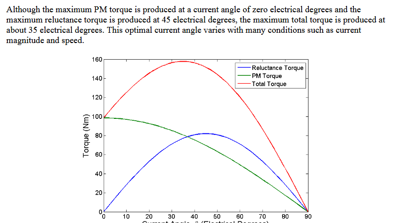 I have seen Oakridge report on Prius 2010 motors I remembered it stated best motor drive torque vector offset at 35deg electrical. Then i remembered a study about how IPM motor starts with 0deg for more omph and then offset those degrees for smoother torque under RPM.