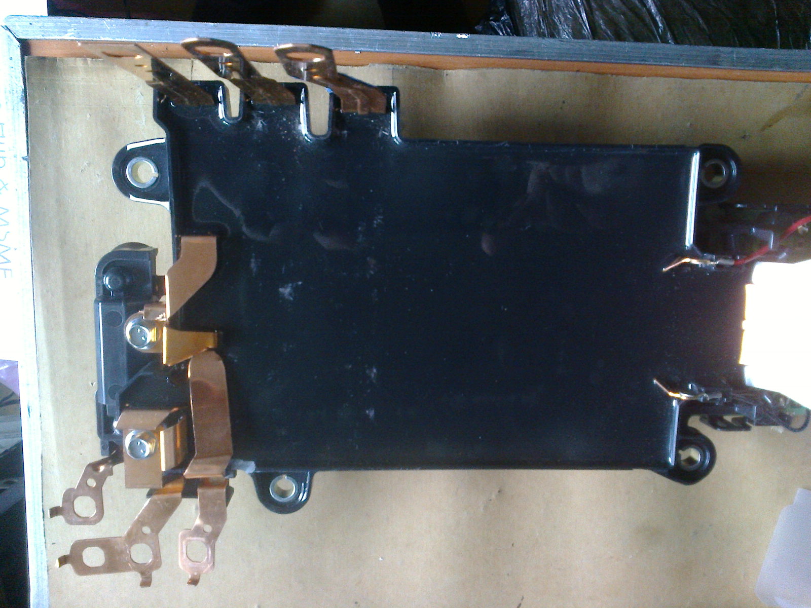 on the capacitor block, we cut off the busbars and added the homemade copper busbars we needed.