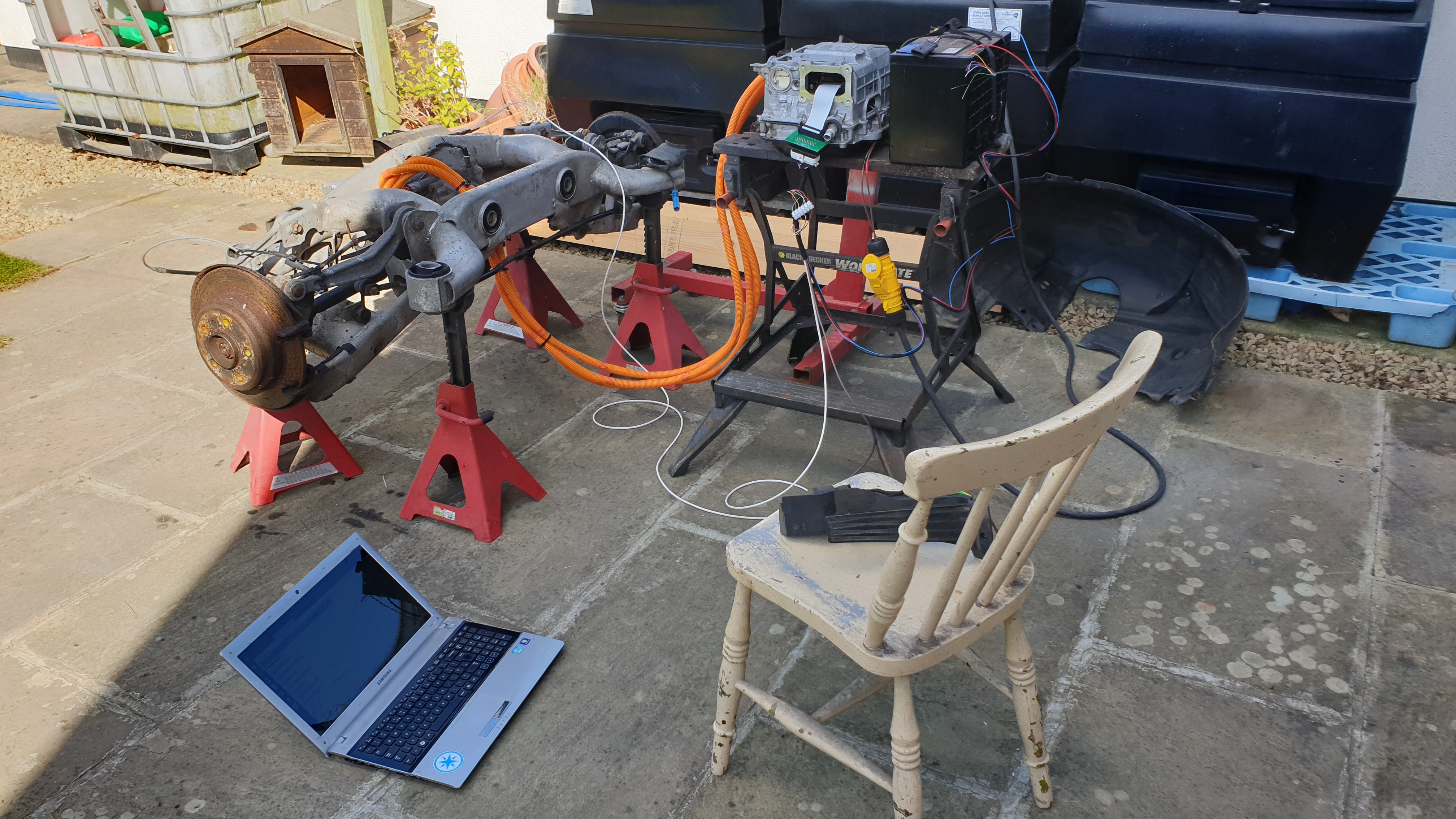 54v moving a comparatively heavy modern BMW with it's handbrake partially on, makes me all the more confident that 240ish volts could get the job done in the VOLTswagen Squareback