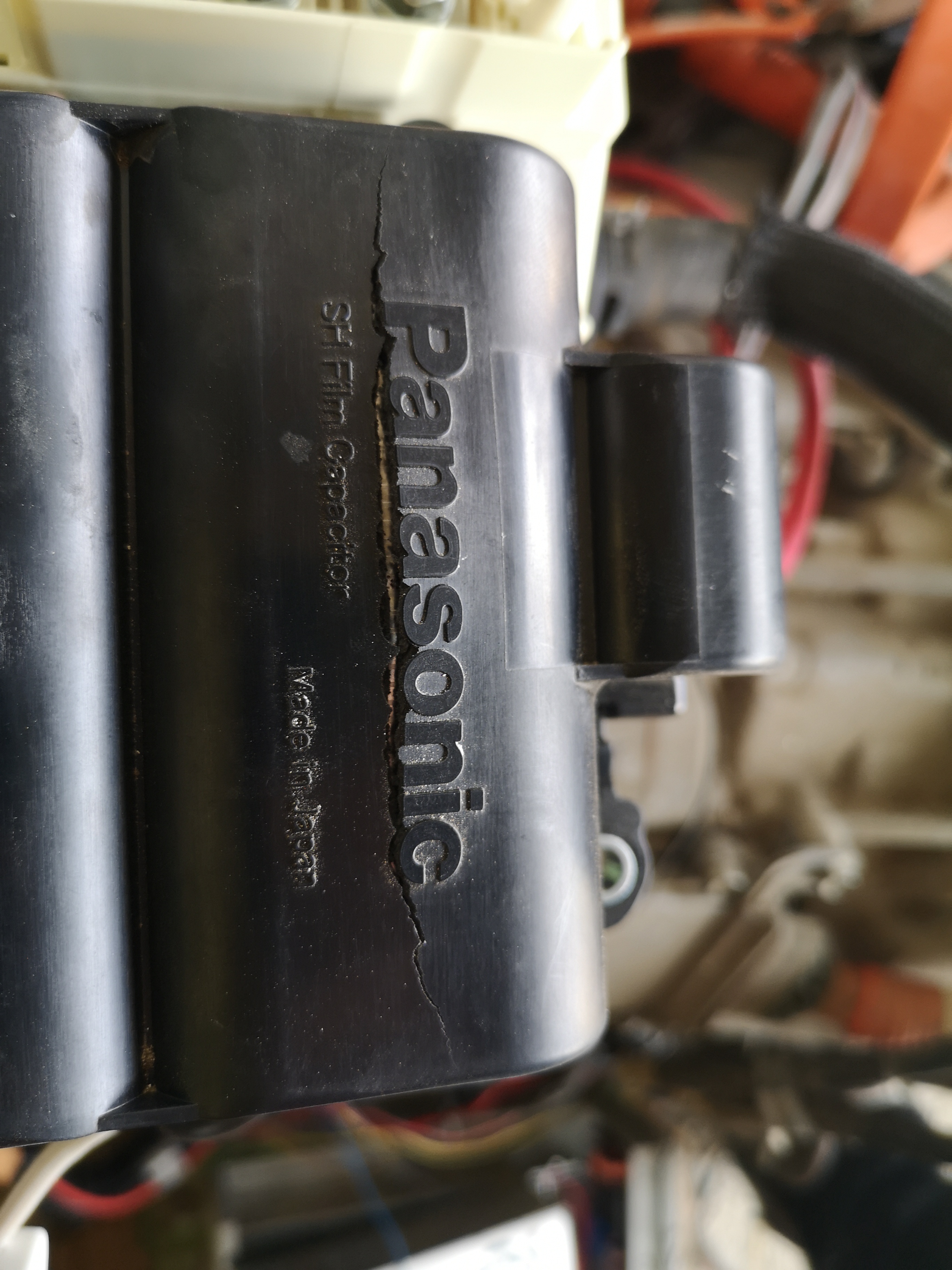 After only half an hour I wanted to measure again the temperature of the main capacitor and I observed that this had a crack which was not there before starting the test.