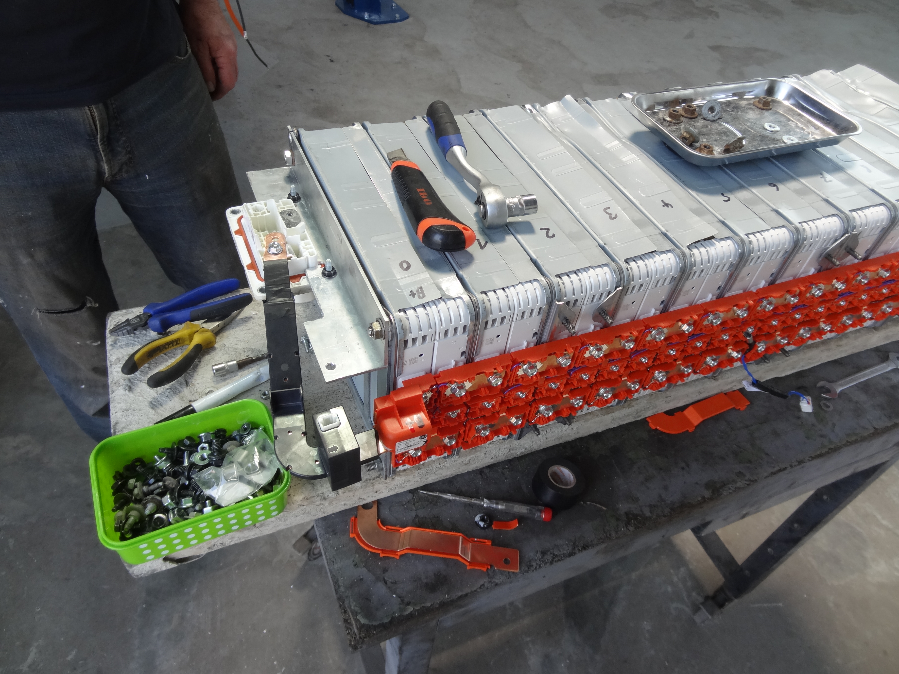 All subsequent quick charges worked and thus were boring. The next one that didn't work was off poor mans charger at my customers garage. It turned out two adjacent cell voltages would read too low and too high, respectively. So say one falsely read as 3.8V and the other 4.2V while really they should both read 4V. Consequently the BMS would limit charge current to 0A. The fault was intermittent, so obviously a bad contact. We ended up hiring a place in a DIY garage and removed the battery cover. First made sure there weren't any loose cell interconnects and then cleaned the connectors and treated them with WD40. Not sure how sustainable that is but it works up to now.