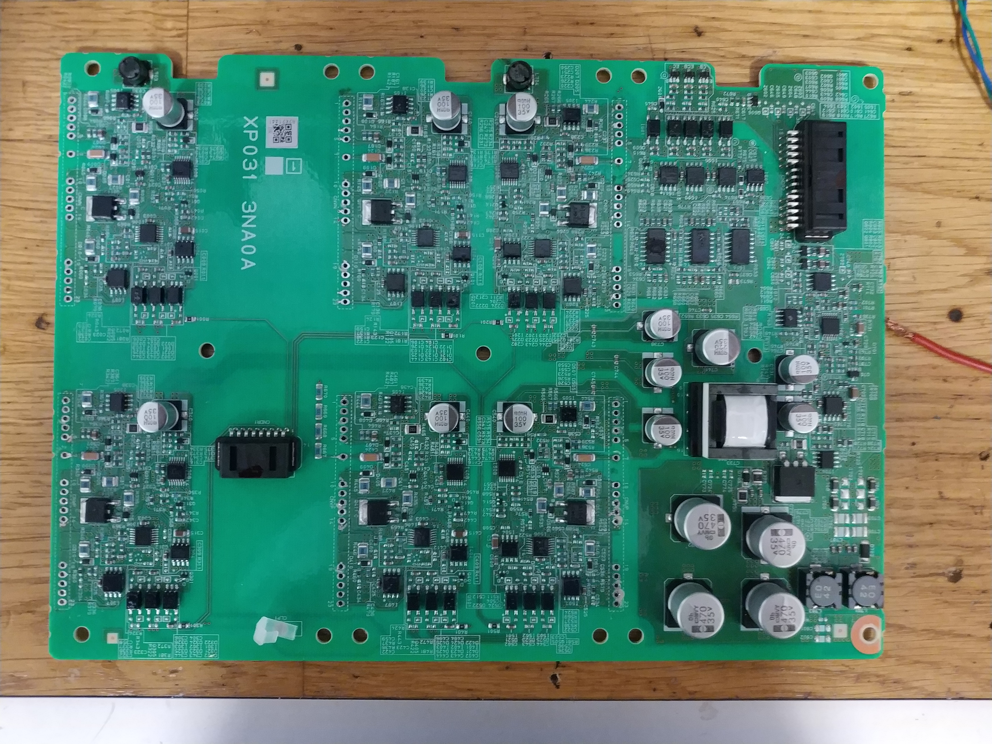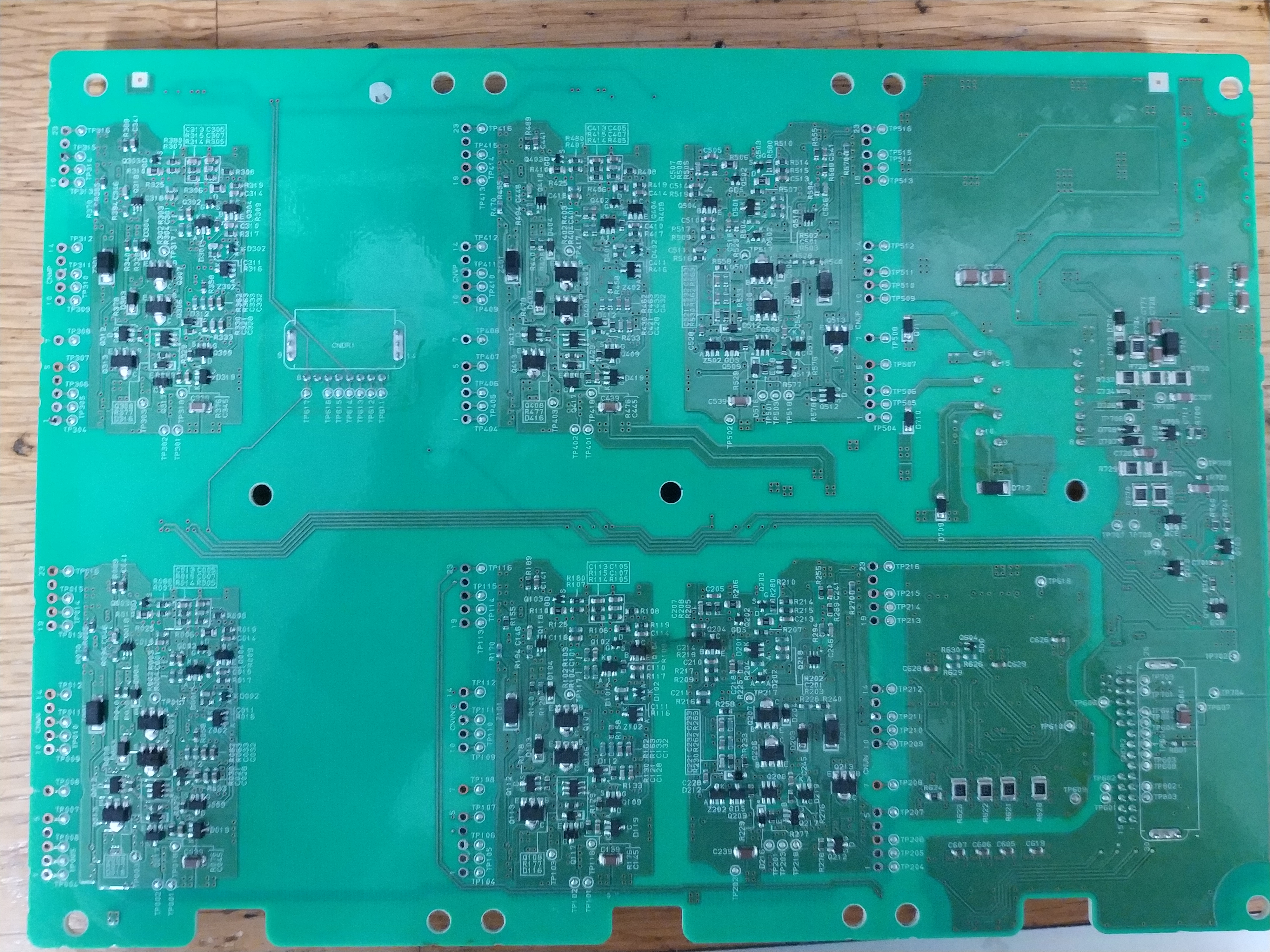 This is the PCB that residents the IGBT:s, it looks like an array of resistors in the middle that goes somewhere on the board. I have measured it and there is contact with the incoming positive DC-voltage on that resistor array.