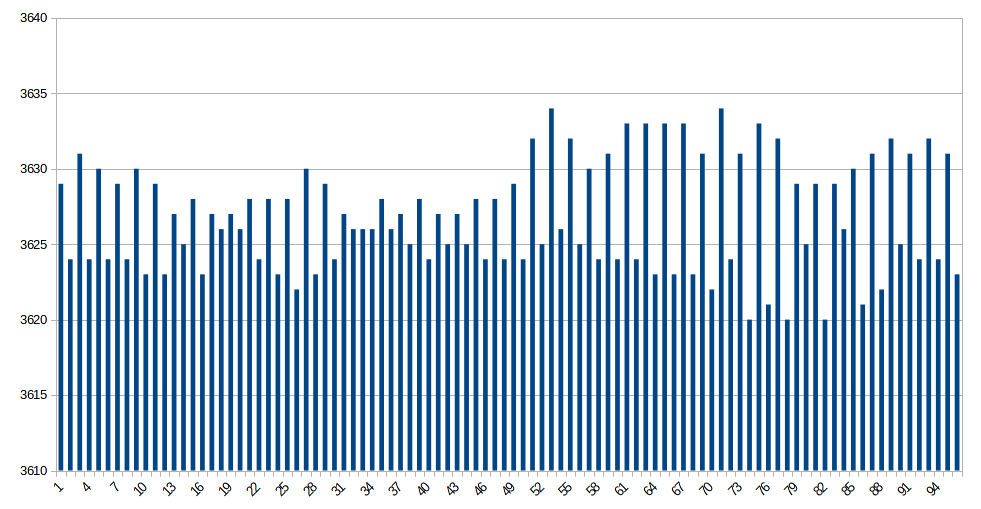 Total pack voltage is 347V, one cell voltage I got ahold of was 3.613V and 347V/96=3.615V. Looks good.