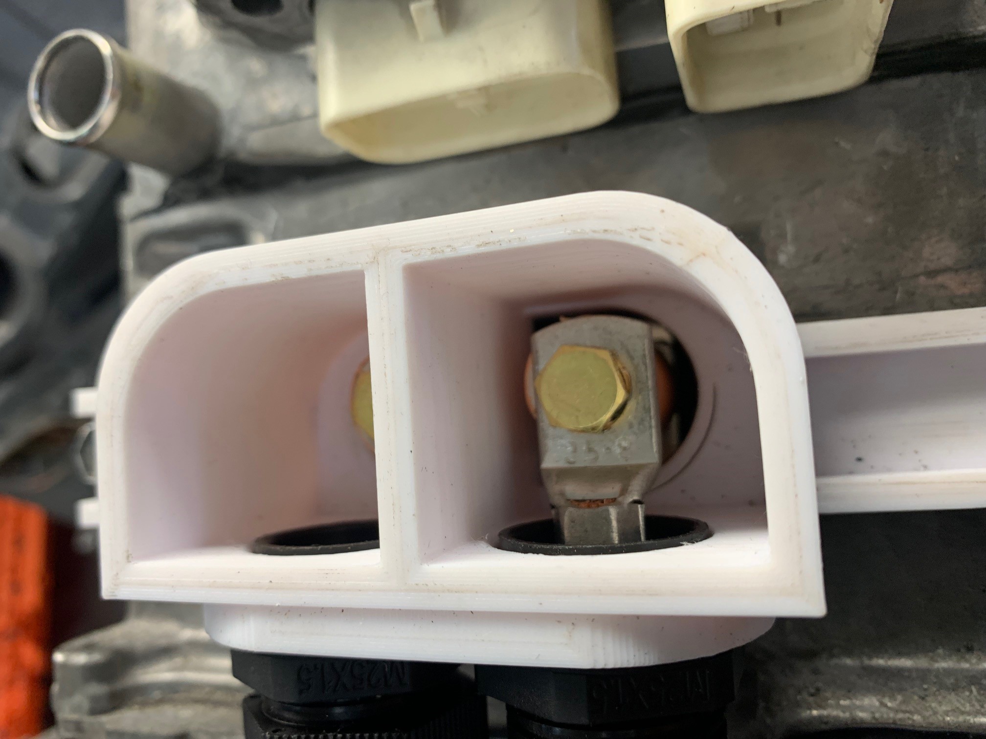 After a couple of requests, here's my design for an enclosure that can be sealed to make the HV battery terminals watertight for the GS 450H Inverter (stl files attached to the bottom of this post).