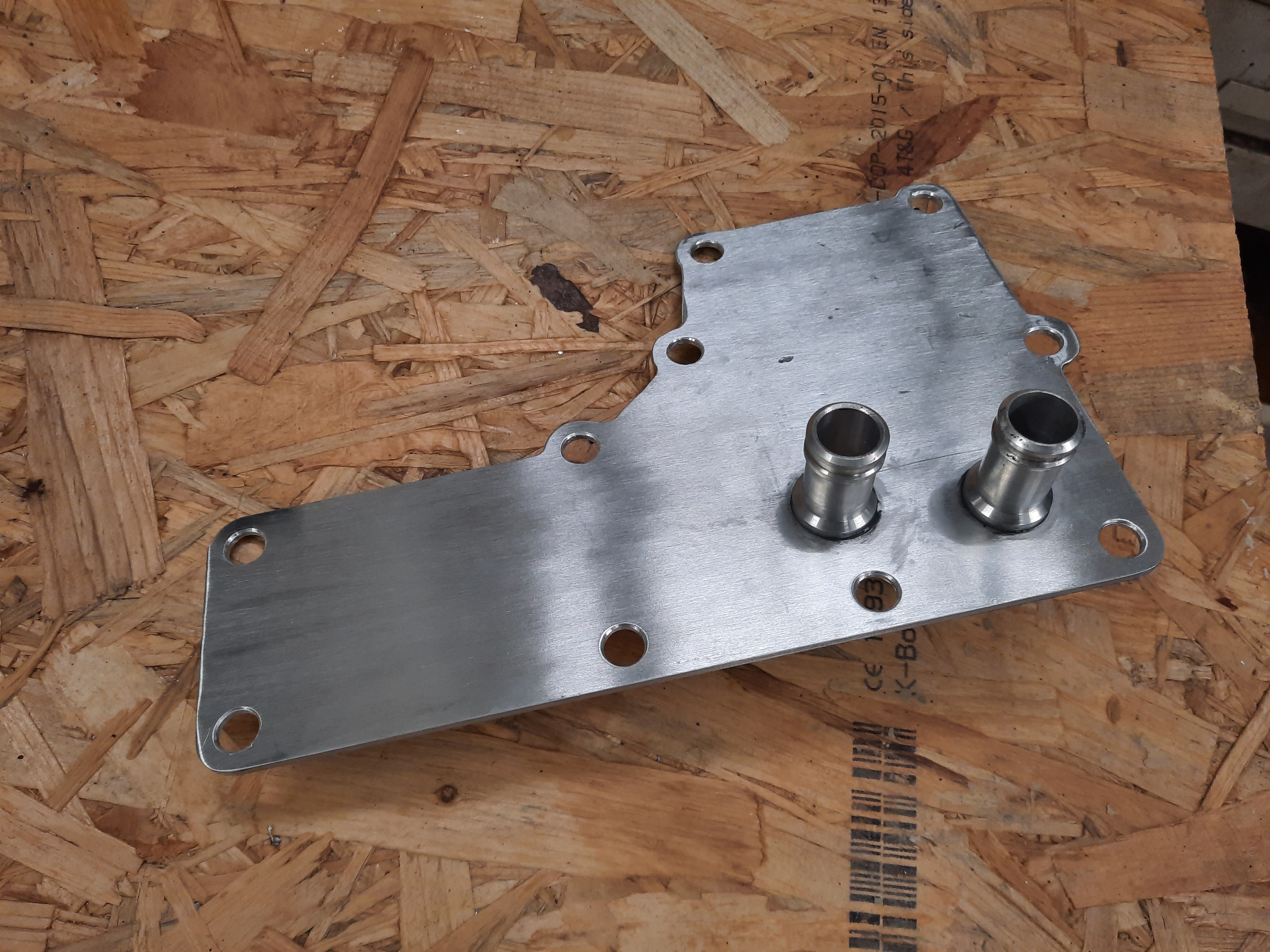 All the structural work in the motor compartment is finished and so everything (except the motor) received a new coat of paint. The transaxle housing has a cooling channel for MG2 which seems to be unused in the gen 3 prius. I want to use it for additional cooling of the motor. Thus, I sandblasted/cleaned the surface, recut the threads and made a matching aluminum cover plate. I attached the .dxf file for the plate to this post.