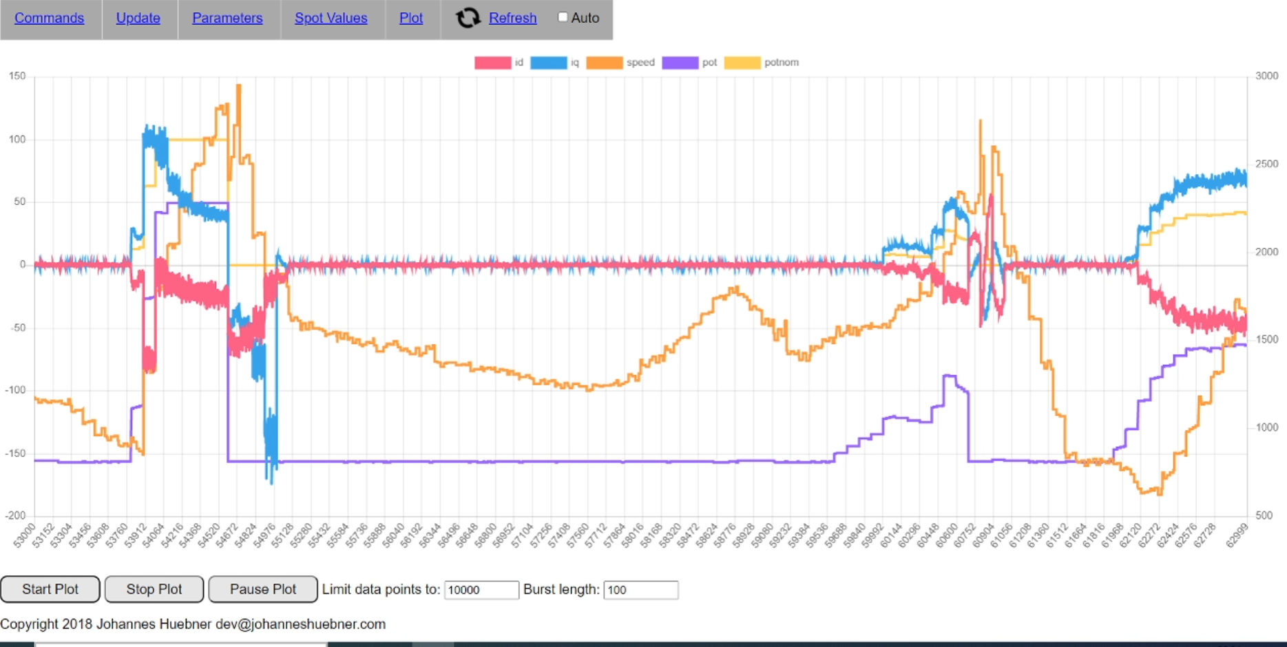 Above 2200rpm (graph below at t=38200): Regen braking with ~50A regen current. Quite strong and continuous braking but no stuttering At ~2200rpm (graph below at t=60700): Inverter input current seems to be oscillating between positive and negative current, motor stutters violently. Plot shows that motor rpm jumps up 500rpm which, in reality, wasn’t the case. The data above was captured with only MG2 connected to the inverter, MG1 was just freewheeling. The motor also shows the same behavior when the wheels are spinning freely in the air.