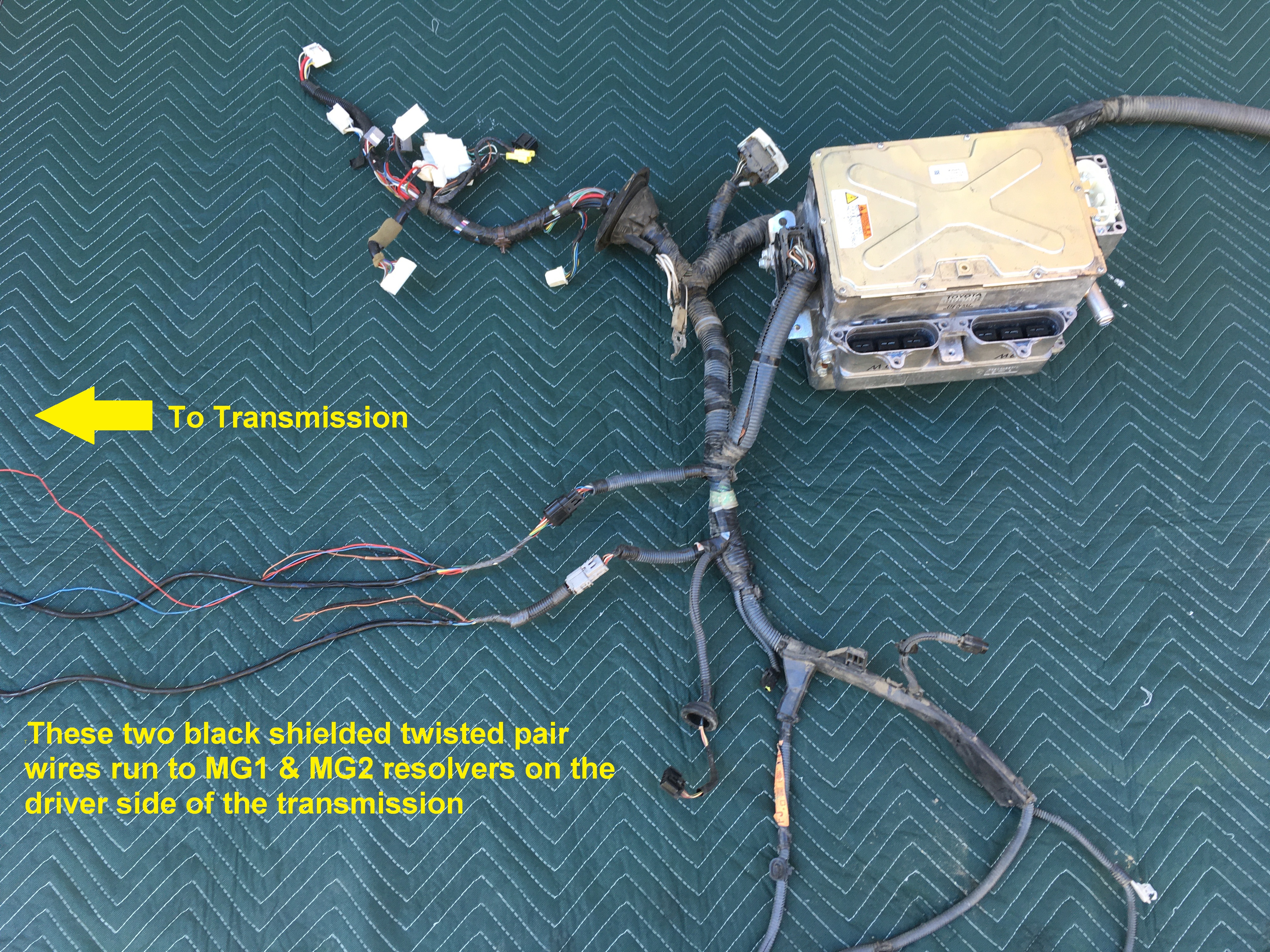 The Resolver plugs from the transmission harness plug in directly into the Inverter harness like so