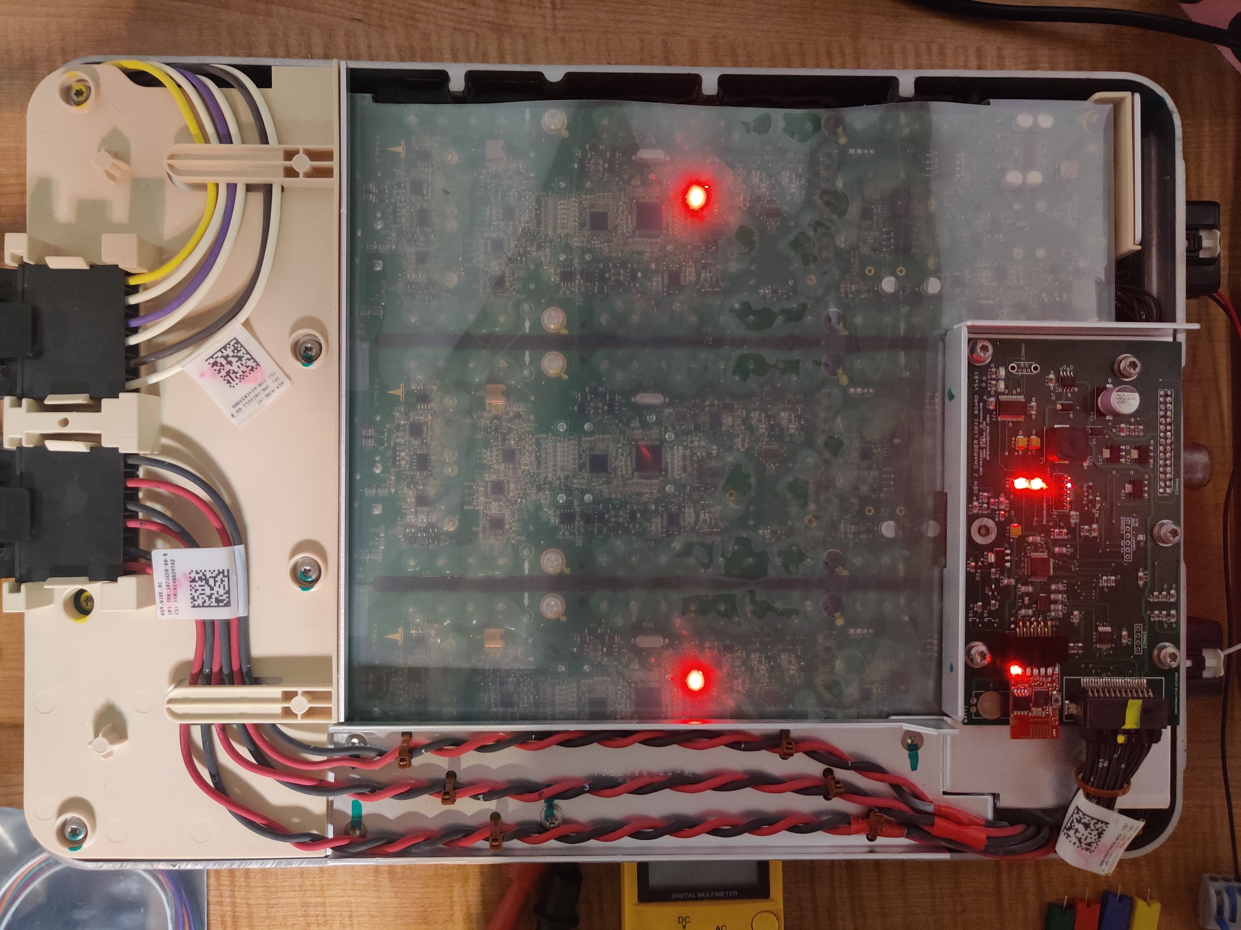 Do you have CAN logs? Of the internal Canbus? It's the easiest way in telling at which side of the river you are.arturk wrote: ↑Sun Jul 04, 2021 11:20 pm Folks, I am trying to test Tesla GEN2 charger. Using V5aB3 board running commercial software downloaded using link on Wiki page (not registered yet, just testing for now). All modules are operated on one common phase (110V).