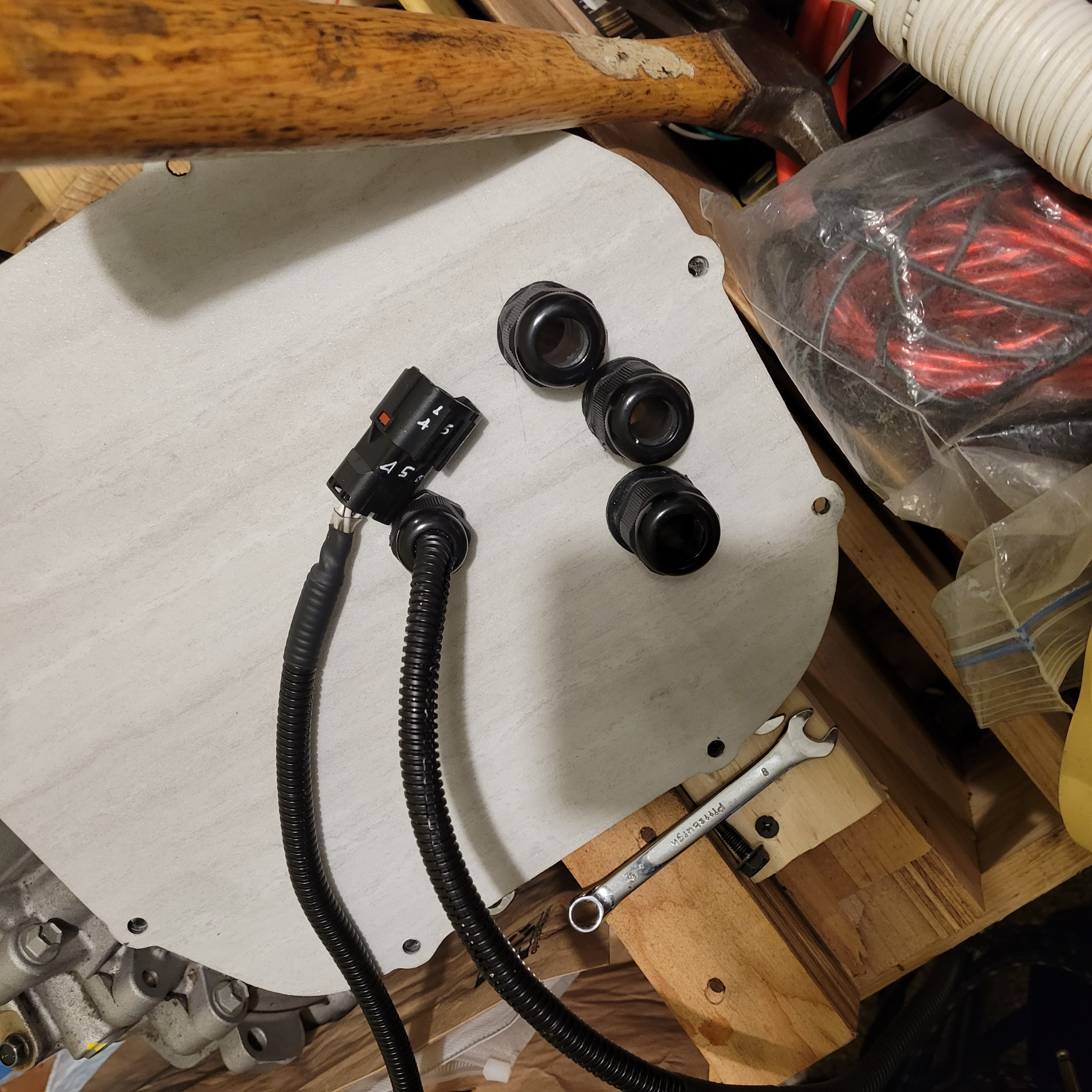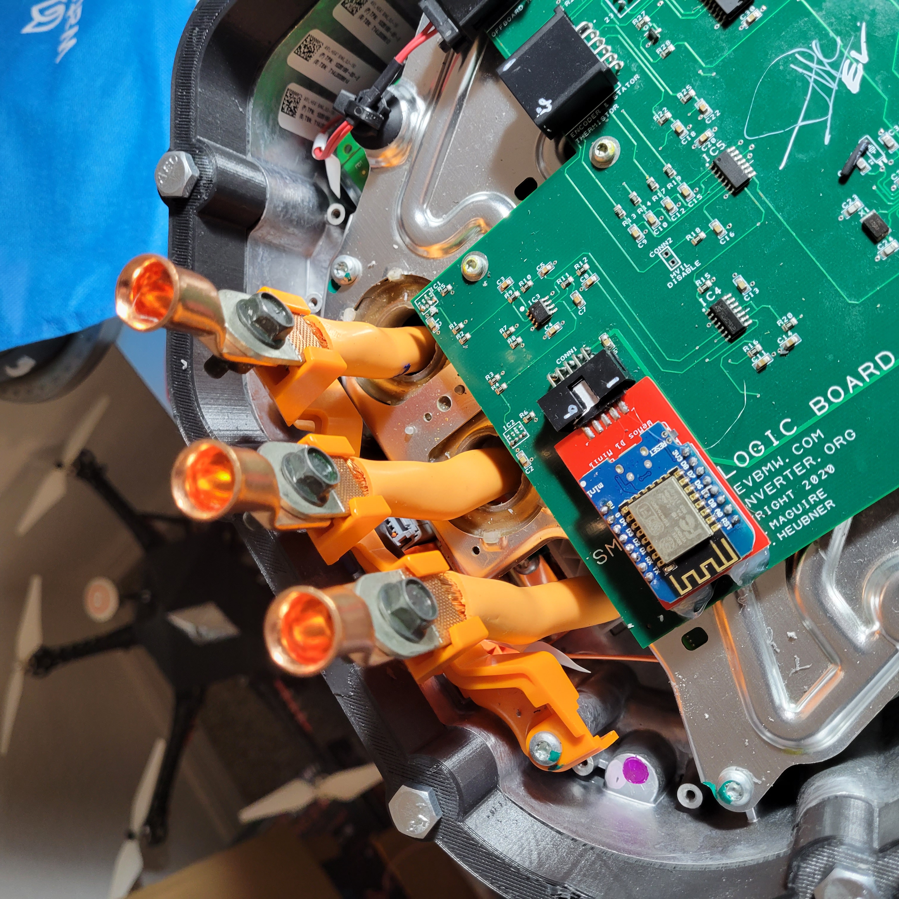 Tesla inverter relocation inverter HV and Encoder new cable routes.