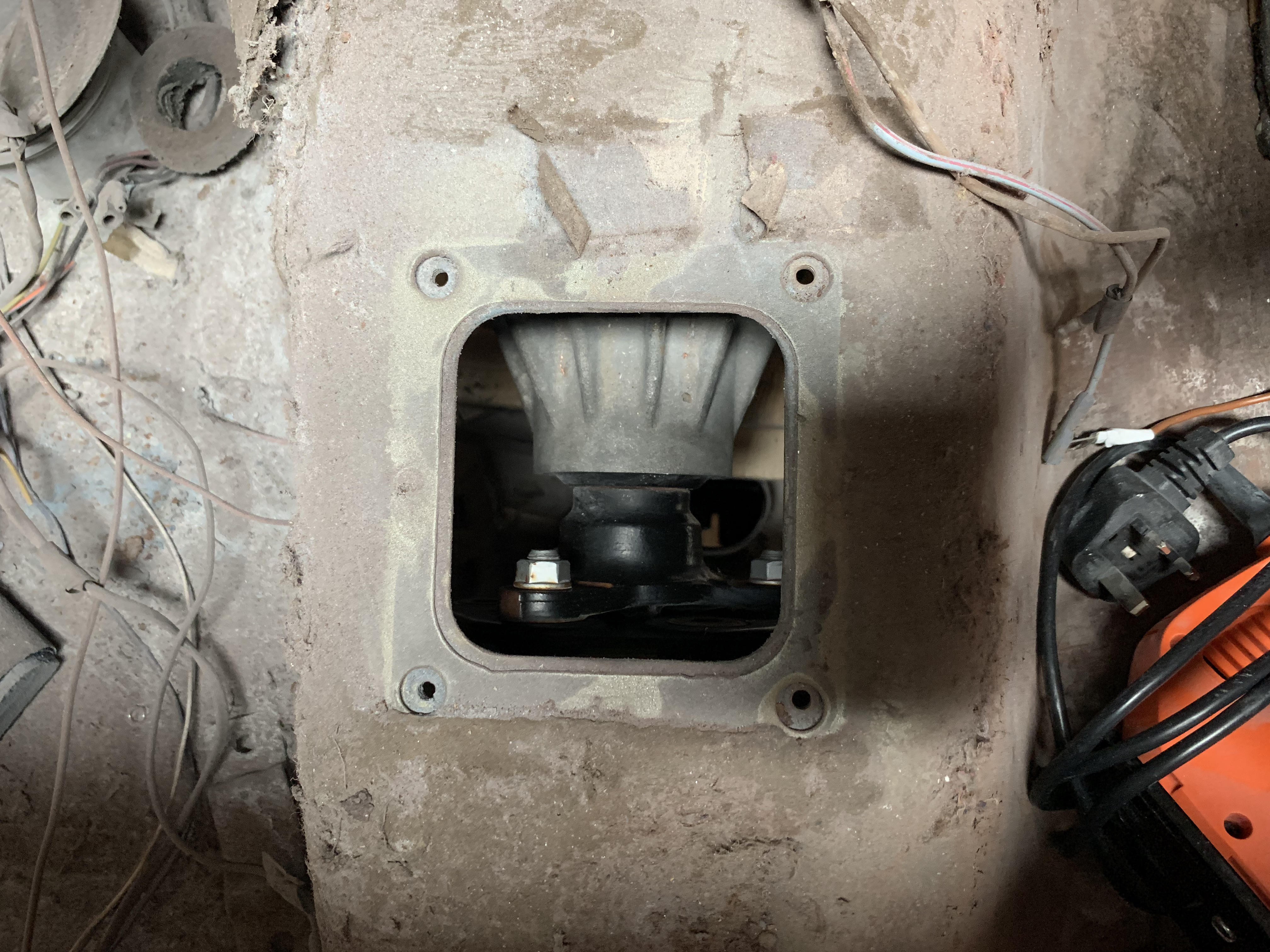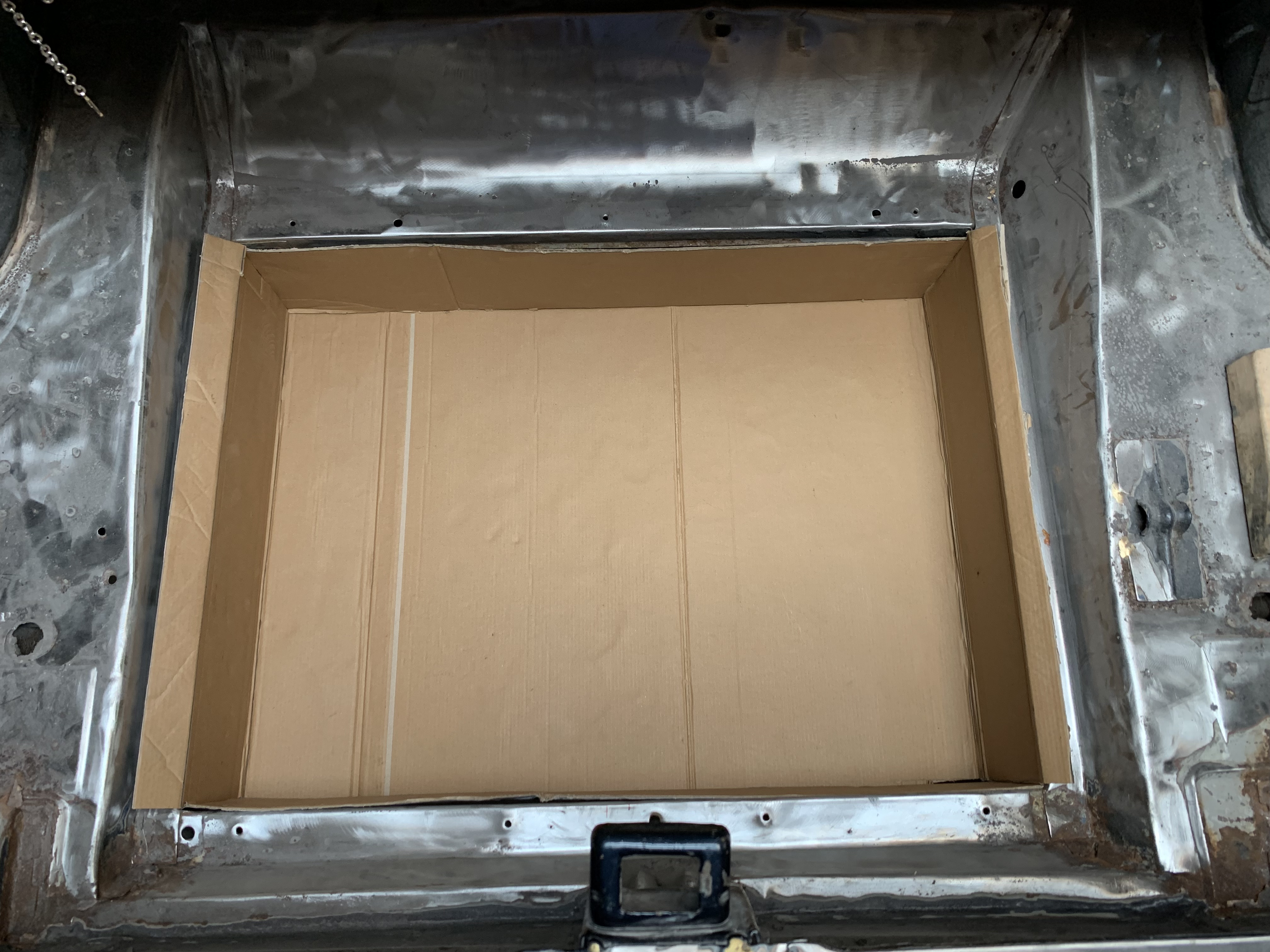 The rear battery box will go in the space where the fuel tank used to sit. In this car, the fuel tank has a lip running around the outside edge. It sits down into a square opening in the chassis - the lip holding it up. The top of the fuel tank acts as the floor of some of the boot space.