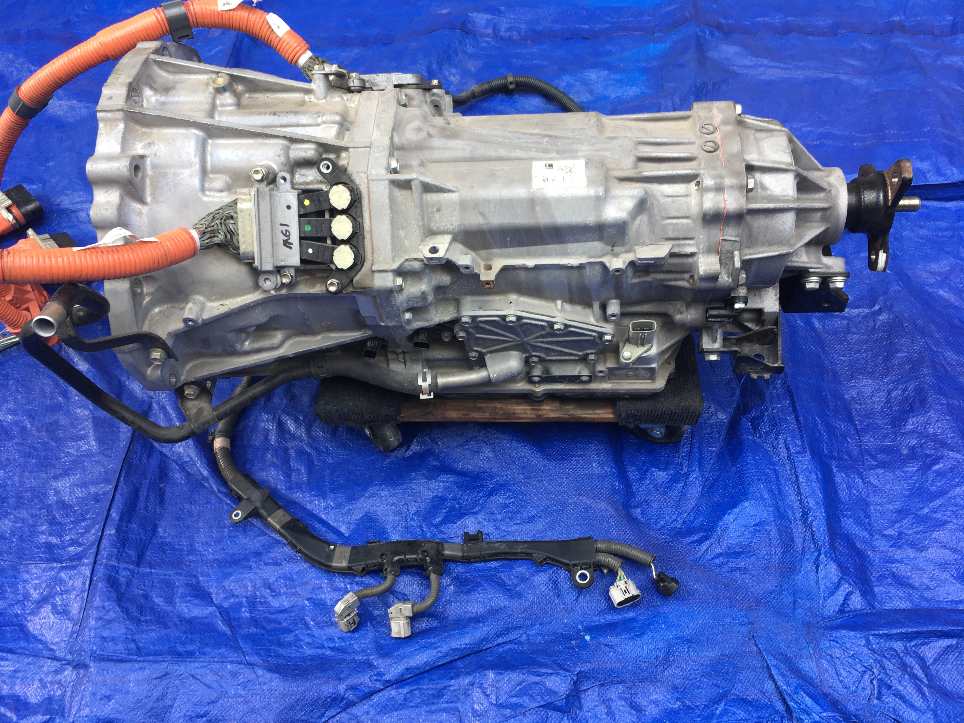 the best way to try and identify this transmission harness in crappy pics is to look for this squigly plastic harness section that runs along the driver side of the transmission, it contains 4 plugs