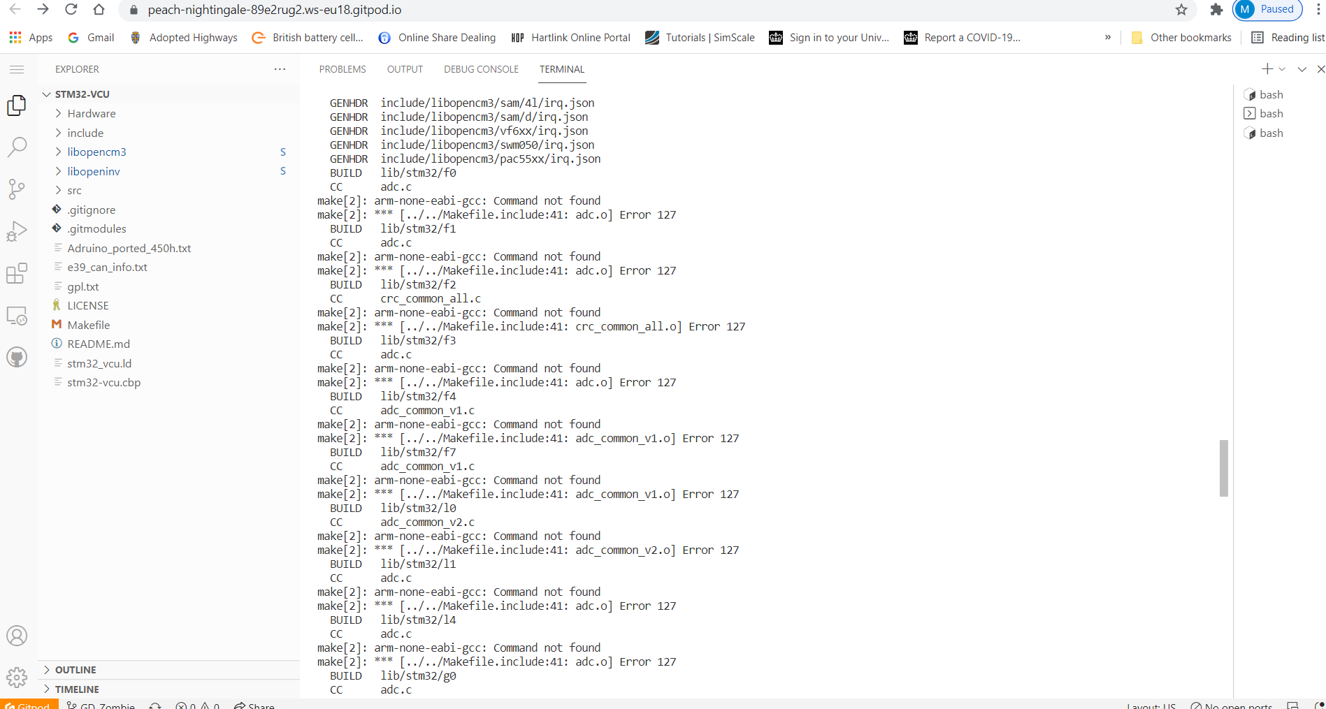 Hello again, well I managed to install Ubuntu but couldn't even get away from the command prompt Doh! The gitpod seemed to work for me after a bit of mucking around I seem to have complied and downloaded a bin from Johu's git. so I installed the gitpod extension and tried on Damien's - once I'd eventually worked out how to get a terminal I tried "make get-deps" but it only got so far before coming back with the error "arm-none-eabi-gcc: Command not found" I think I've installed the arm-non-eabi-gcc toolkit on my machine but perhaps not or does it need to be included with the git? Sorry for all the silly questions and thanks for your patience.