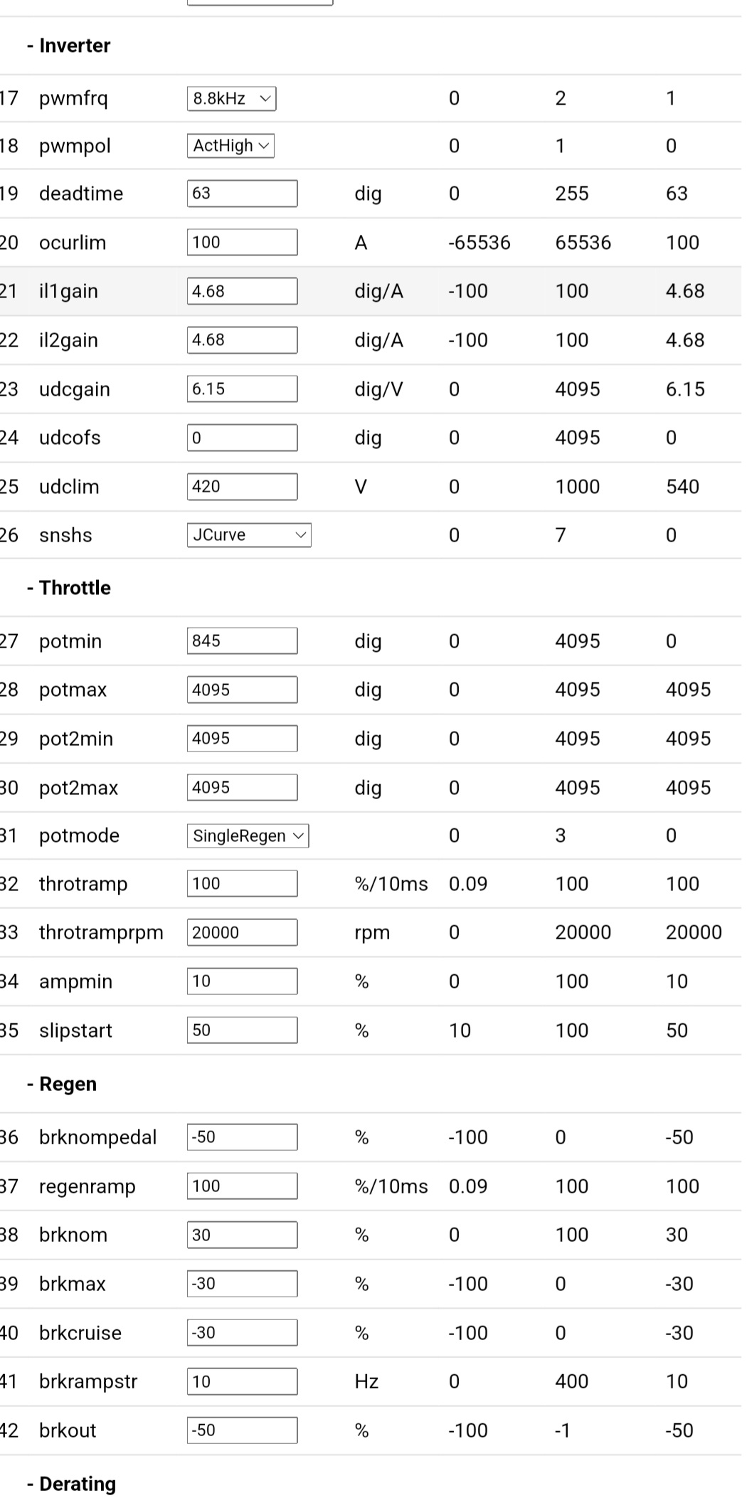 Try setting UDCSW voltage set to 60Vdc. Maybe that would cure the problem. Also try to record the graph of UDC measurement when applying throttle. You may find out your problem is voltage reference on the STM32 chip.