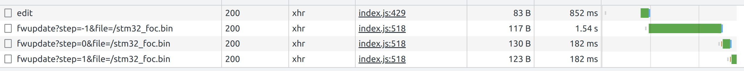 As a small side note, I has filed named "stm32_sine(1).bin" and "stm32_sine (1).bin". The space in the latter requires manually URL encoded syntax in the filename: