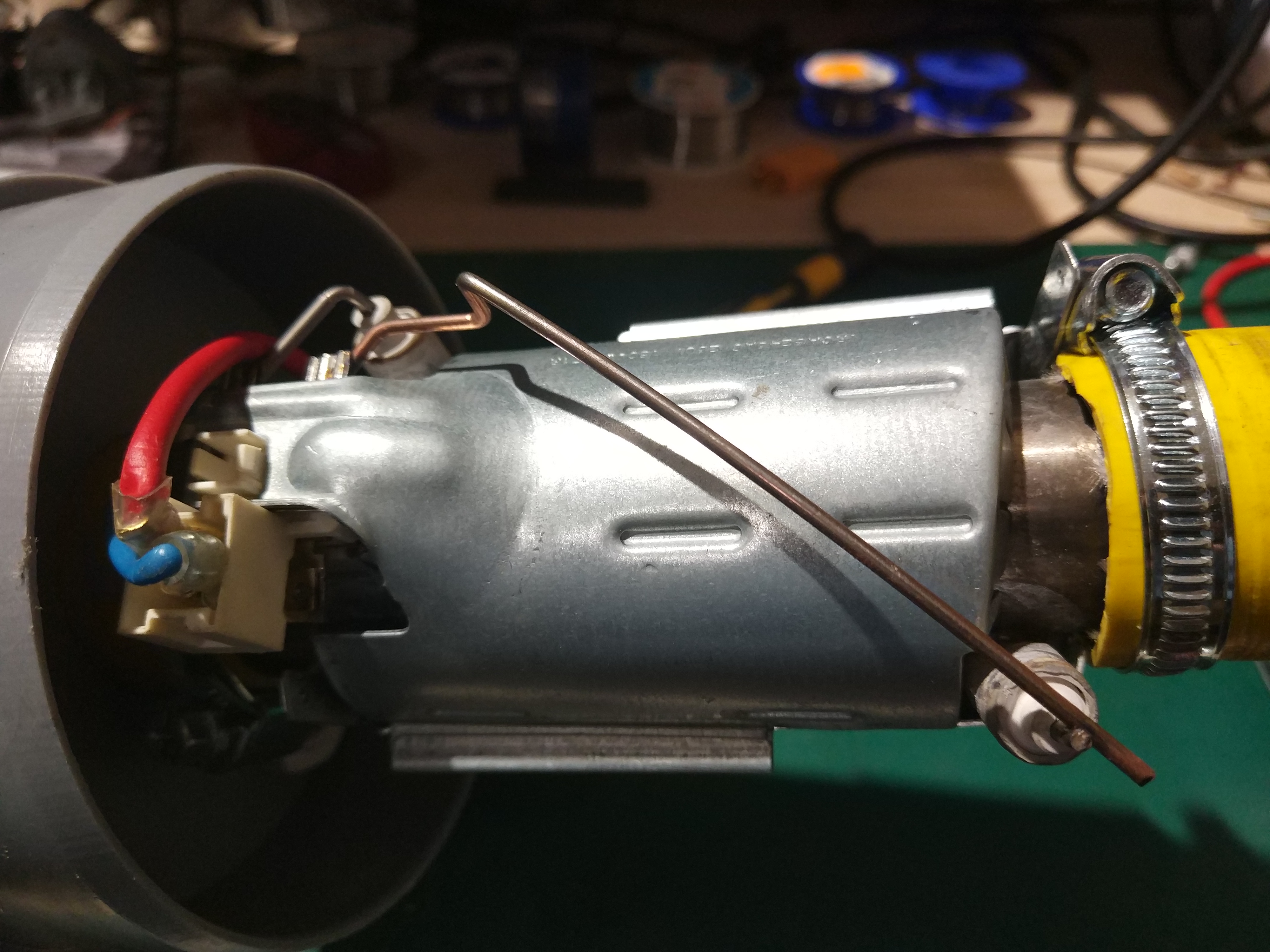 Of course i need to make some modifications to use it. First i need to disconnect thermostat switch that opens at 90deg. If i had used it with DC it will open just once... Instead i connected power across it and i use outside thermo switch on alu tube. This switches 12V relay on and it in turn closes DC relay for 400Vdc. You want to be carefull though 5kW is a lot of power. I use 85deg thermo switch so coolant wouldnt boil off.
