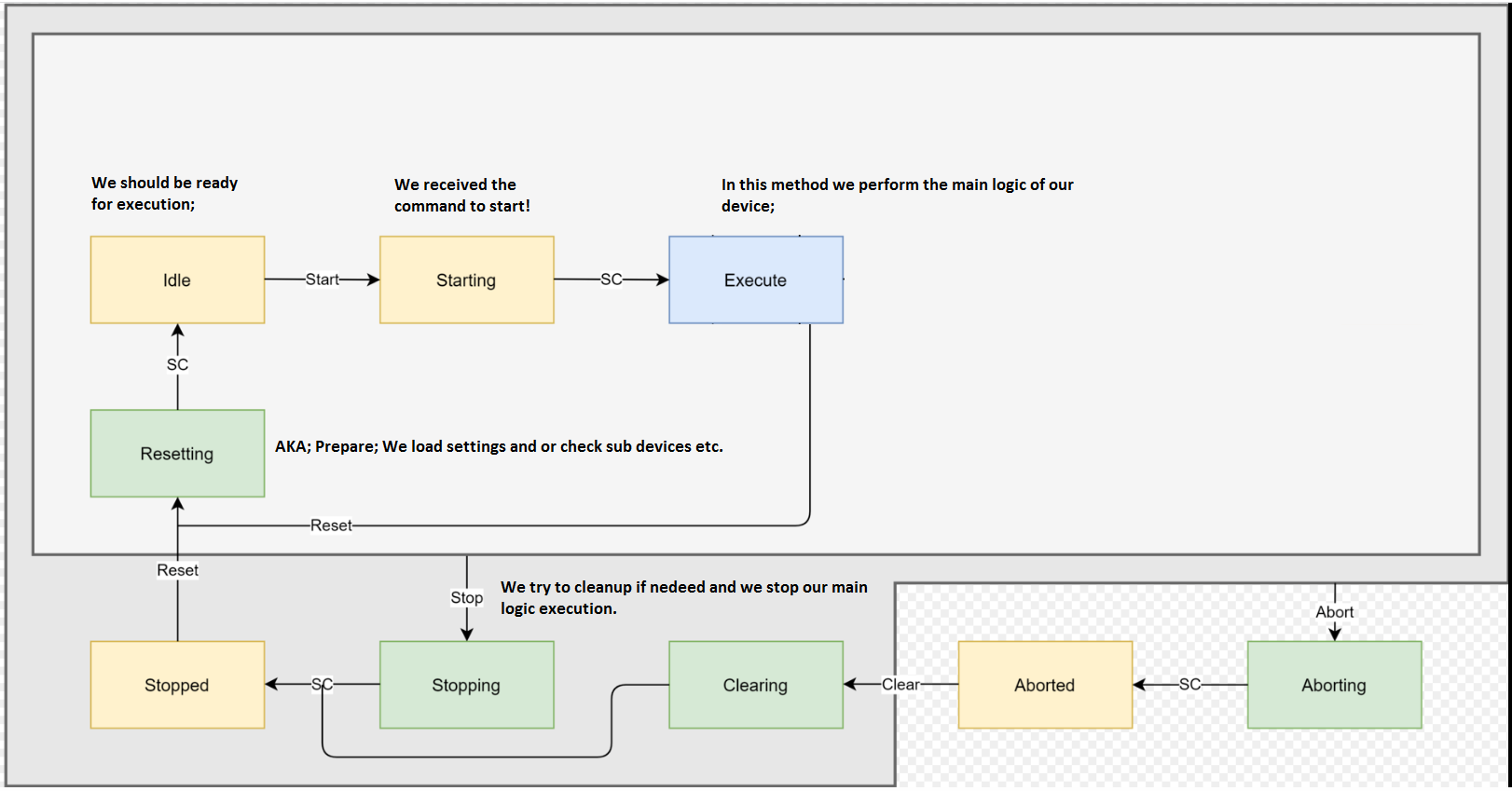To come back a bit to this discussion about StateMachines i have build my own, leaner / light, implementation of the famouse PackML standard.