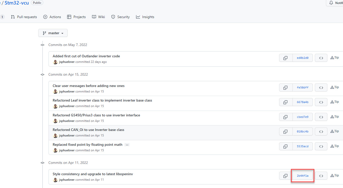 You can work for way forward through my various commits by using the hashes from here: https://github.com/damienmaguire/Stm32- ... its/master