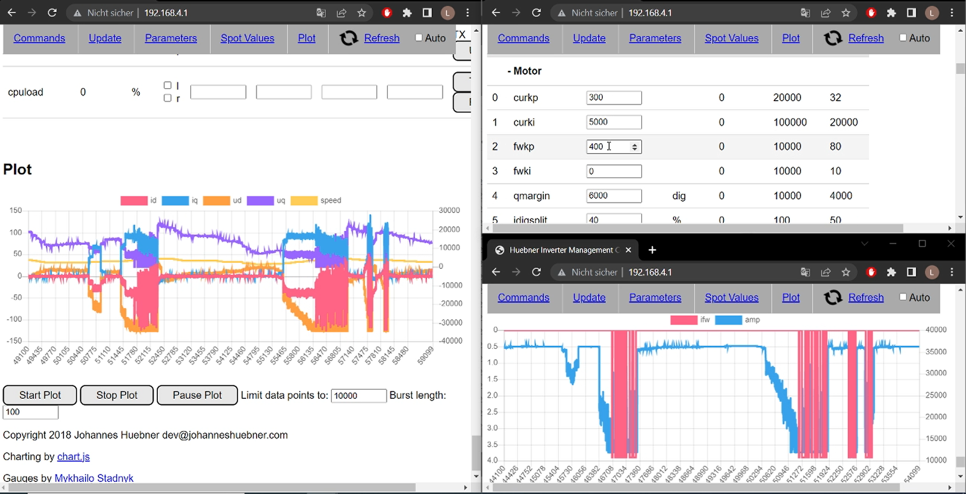 As the FW controller only adds additional Id while keeping the total current constant, one should be able to simulate it by increasing idiqsplit at higher speeds? I have tried that several times with various values, but never came close to the power of the “real” FW.