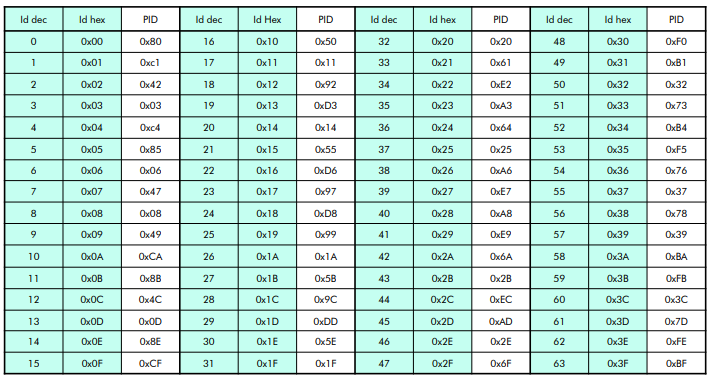 Just to add / clarify for the purist, no offence, the difference between ID and PID are the two parity bits. Both of them make one byte. So there are only 6bits for an ID. That's why we have 63 Addresses maximum.