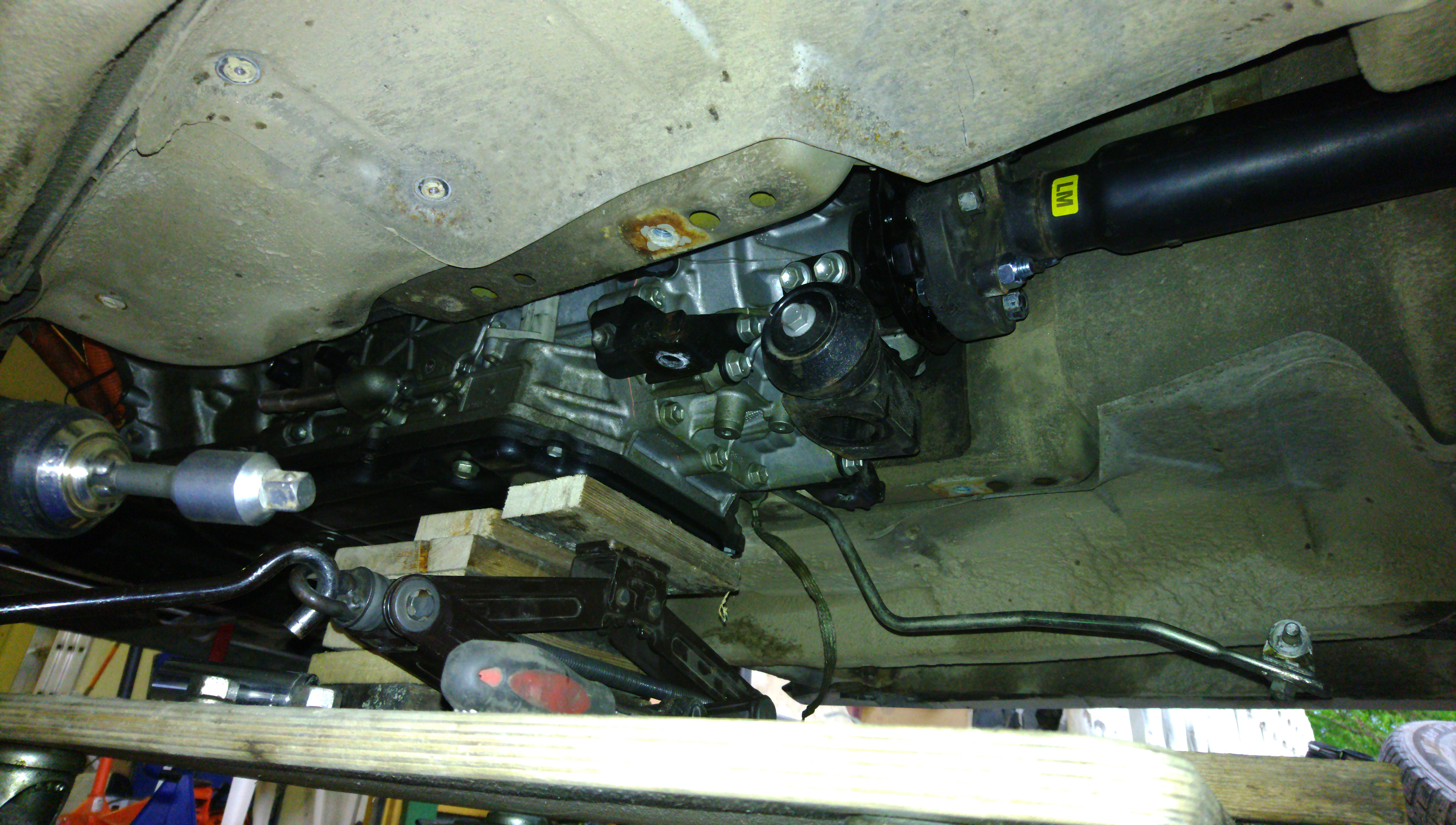 Transmission aligned and Lexus rear mount modified to fit.