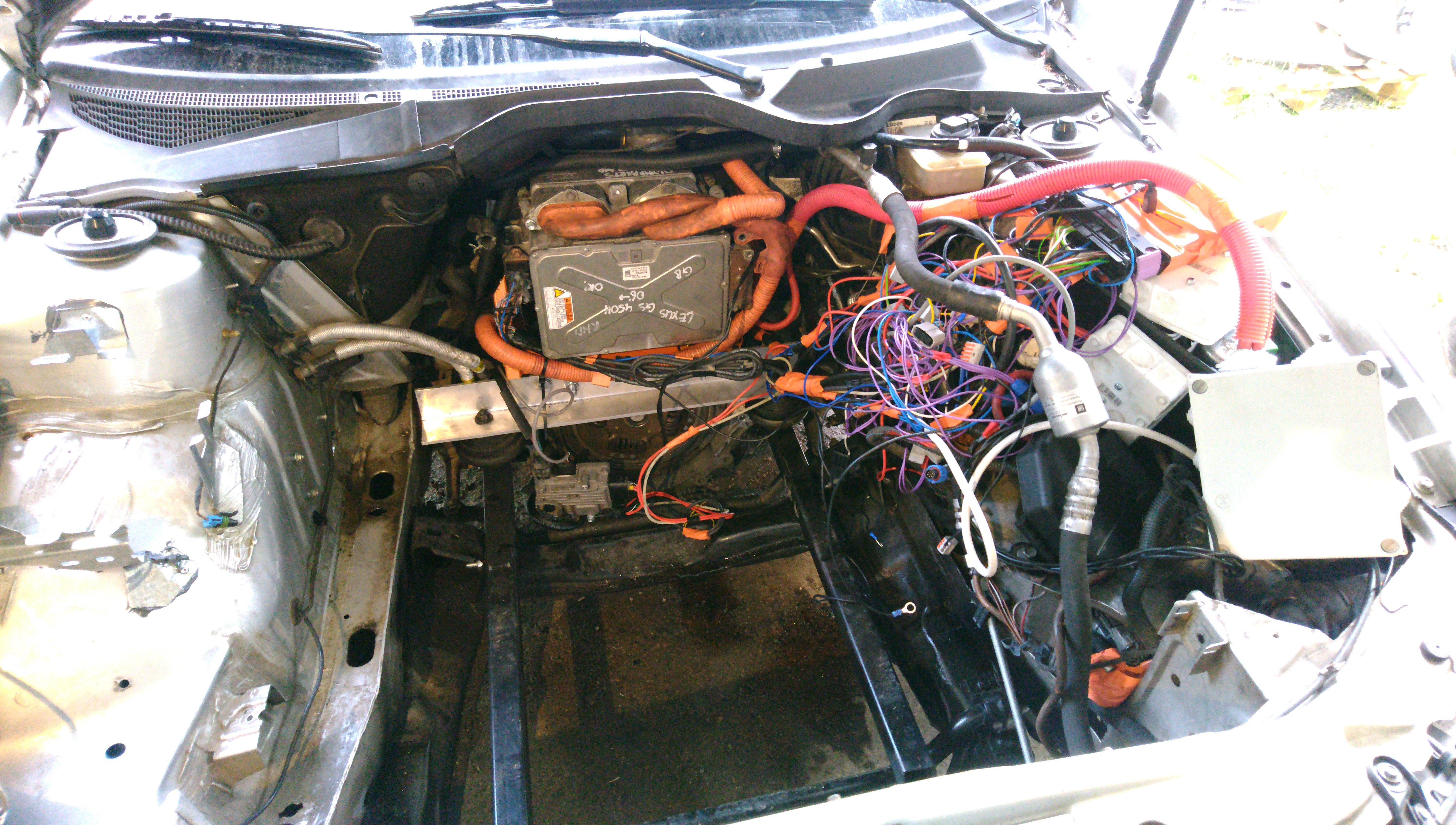 I bought an Opel Omega B2 with the newer GM 2.6 V6, and intend to swap a GS450H transmission + 13 Tesla modules into it to get a minimum voltage of around 250V.