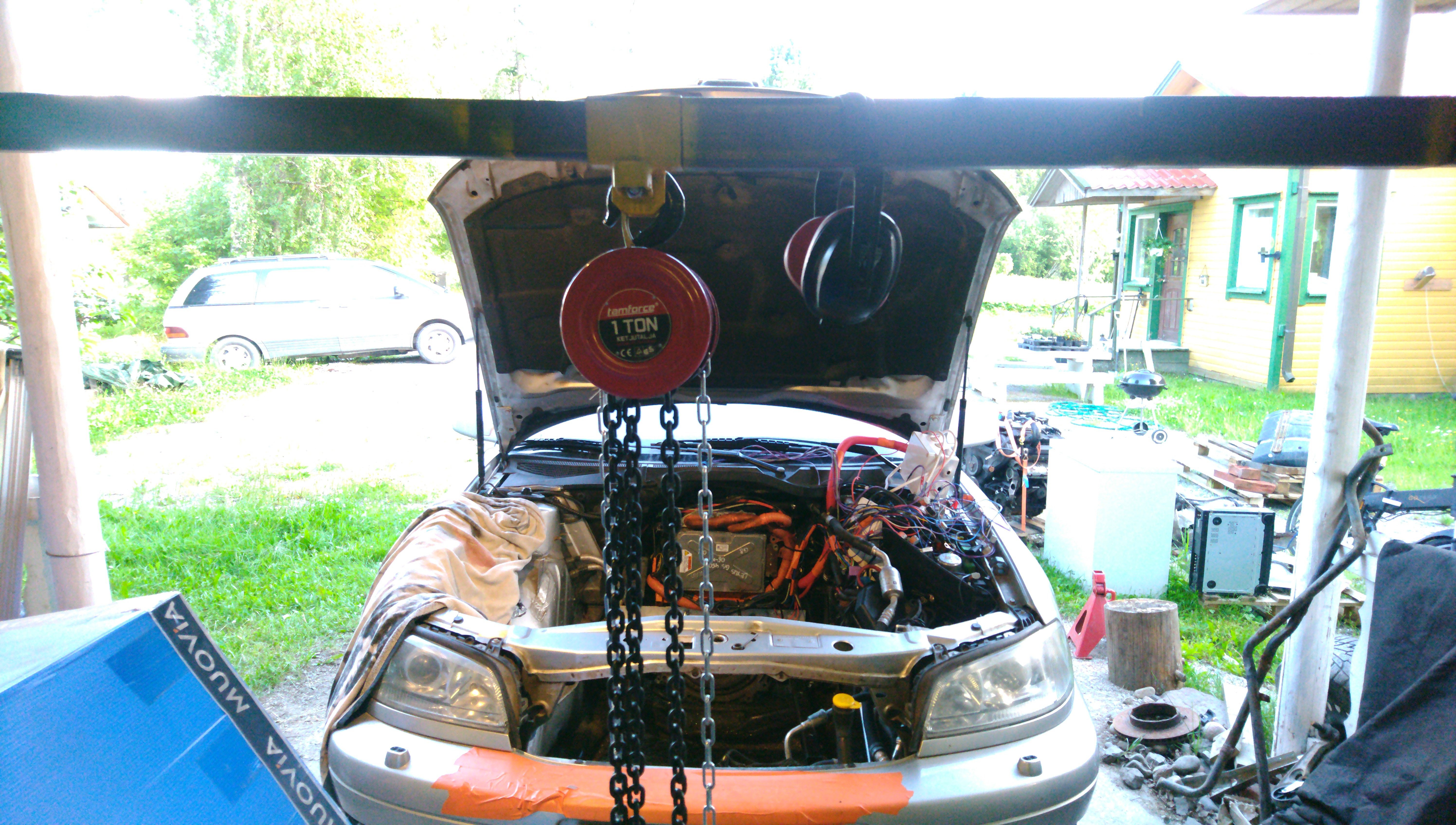 I hoisted the battery in and managed to make the car driveable again. This is a yet another temporary set-up but it's nice to have it on the road for proper testing and tweaking.