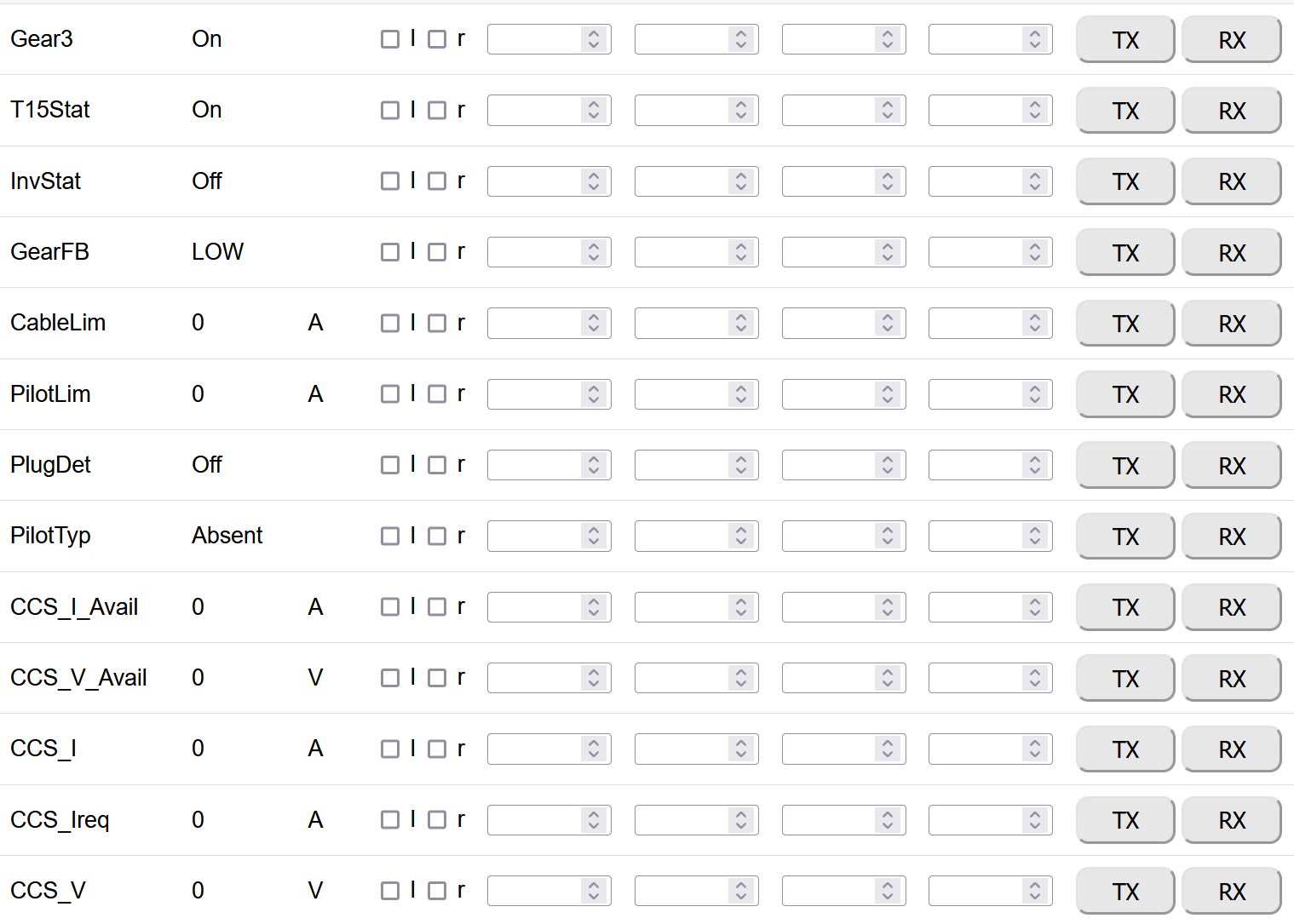 So following Damien's post earlier in the week, I loaded up the binary from the link he posted and did a quick test with my GS450H setup. For the first time there was a whine from the inverter/gearbox, InvUDC was reading correctly, I could plot a torque curve (0 to 1000, where all previous binaries didn't give me any torque plot), InvStat never changed to 'On' though. Selecting fwd or rev, and pressing the accelerator pedal the gearbox would rotate a little but I was using a cheap 60V 3A or 5A supply that tripped out. I noted 'regen'travel' was set to 30% so figured I'd to a new test changing that to 0% and change over to some 12V batteries in series for the HV.