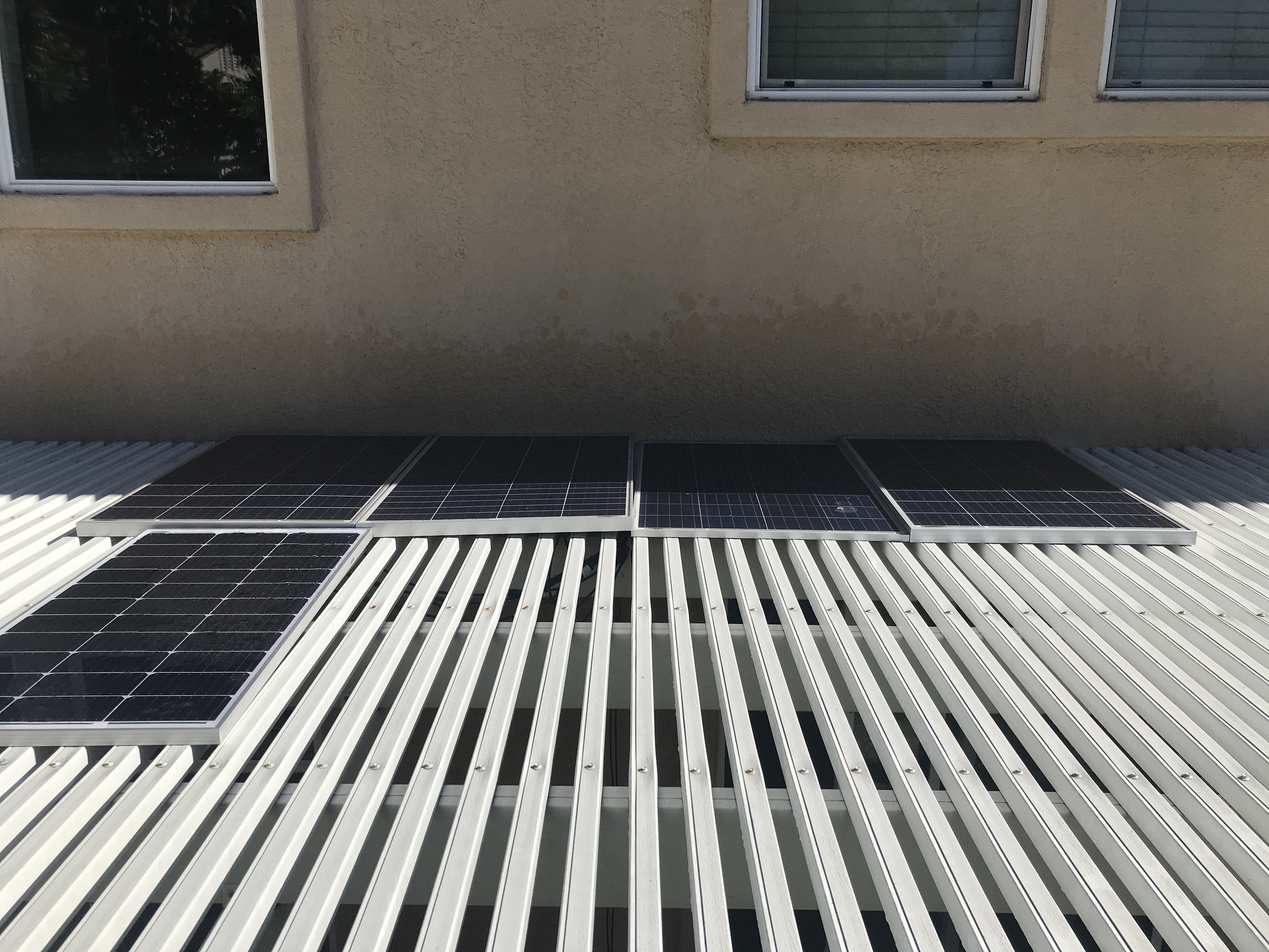 so as the months went by, I would get one new panel every month and throw it up on the patio cover, yes flat, totally horizontal, yes I'm a moron