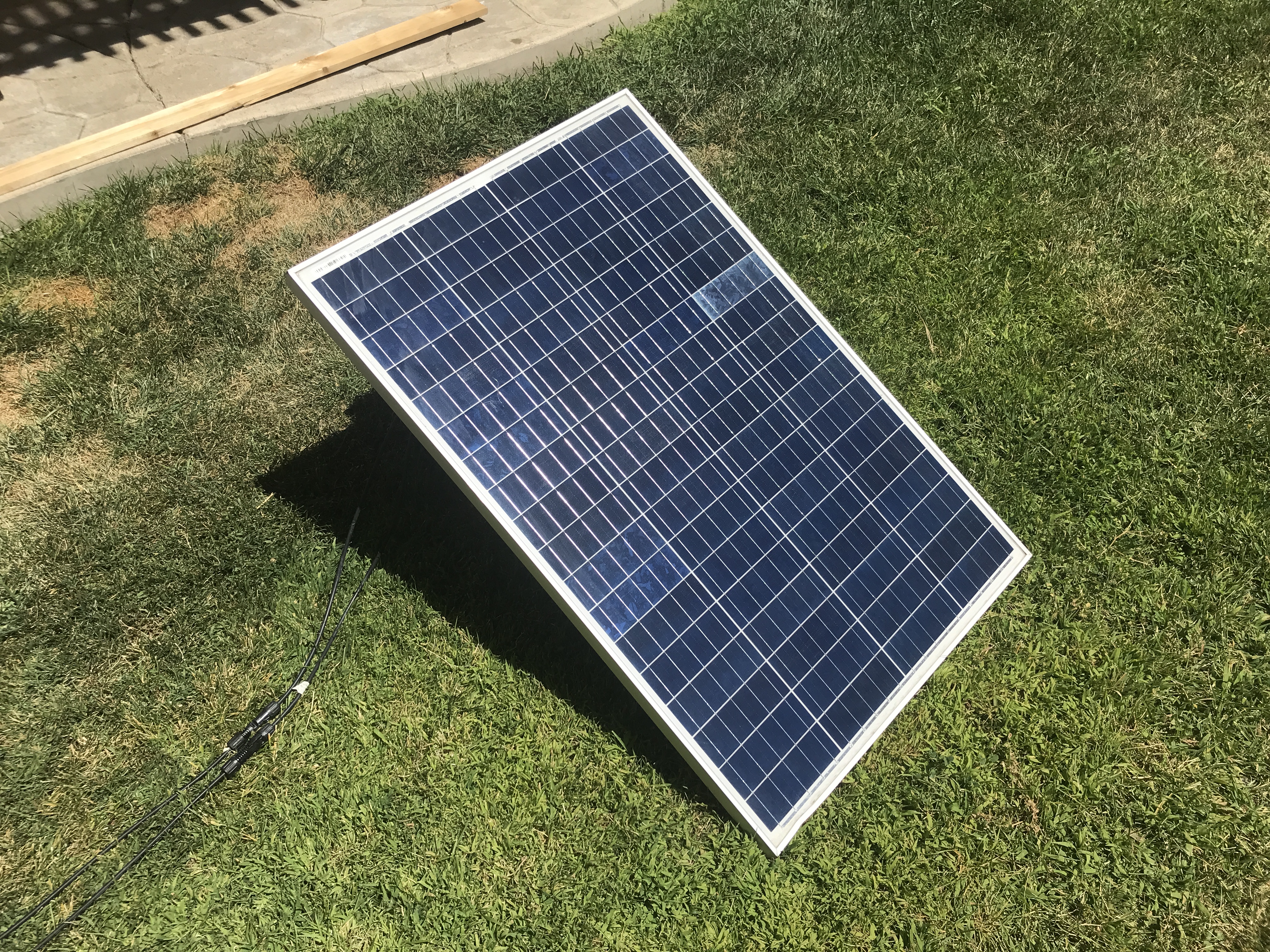 My requirements: buy a 100 watt solar panel so I could do the math easily as I add them up, 100 watts, 200 watts, 300 watts you get the idea