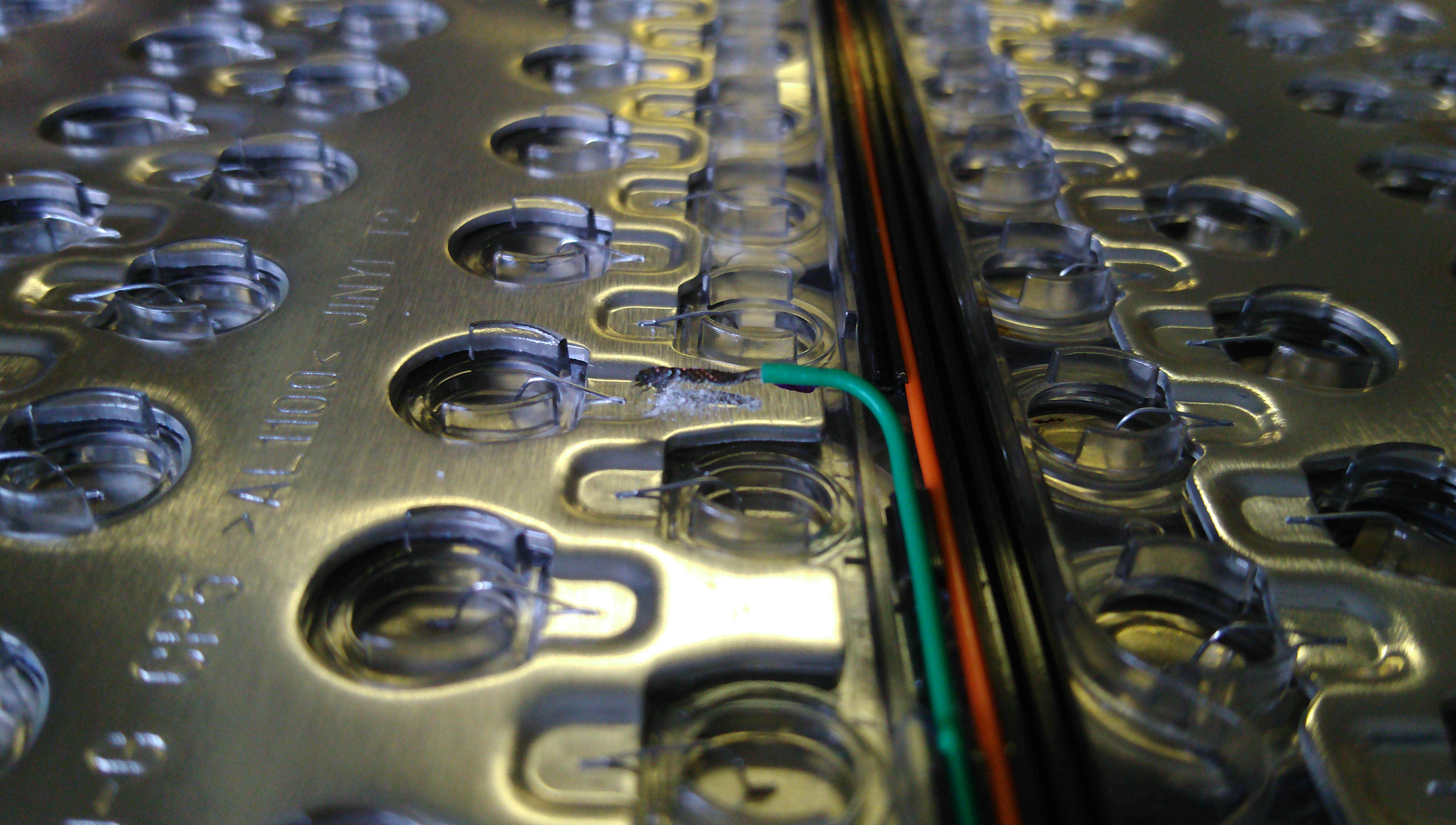 Then I quickly modified the original Tesla harness into something I can use and wired up the BMS to see if everything worked. Had to modify the code a bit to get it going. Then noticed one of the modules looked like it had a broken sense wire, inspected it, and found two detached wires on the bottom (as they always are).