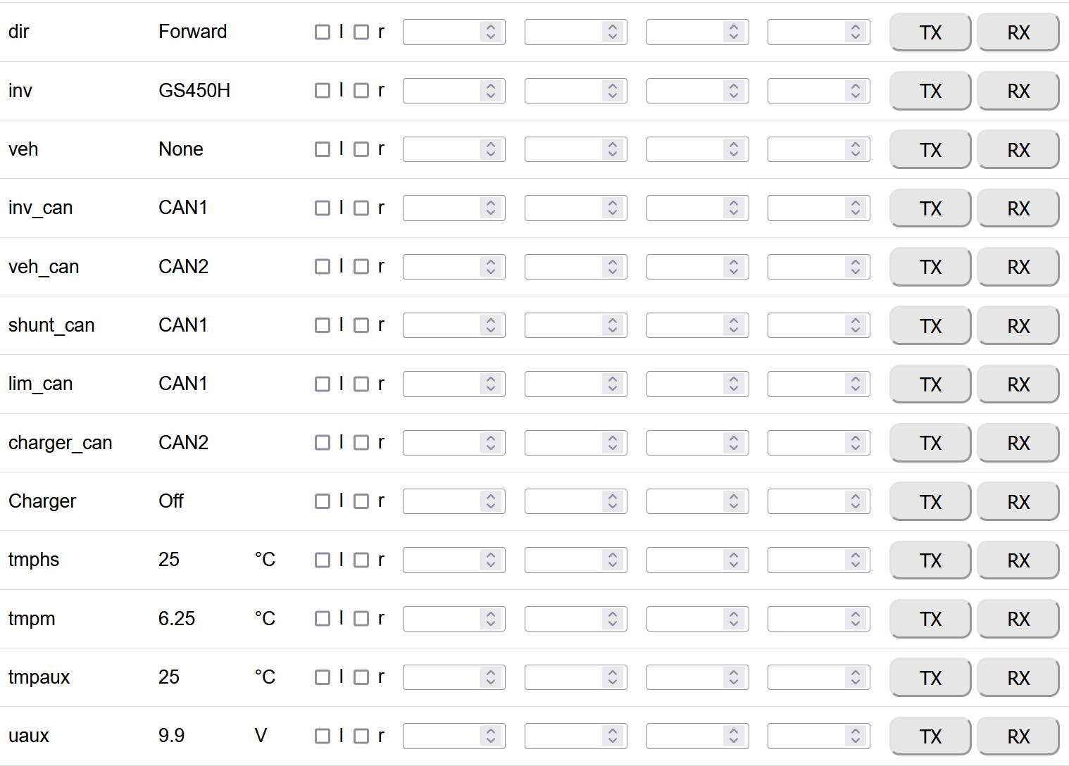 So I tried a number of things to see if it was a sequencing thing for inverter power up, manually applying brake signal to vcu in different orders, etc, trying to mimic my test earlier in the week but don't see that I'm doing anything different and don't see any issue with the wiring. The setup still allows me to swap in the GS450H VCU, so powered it up and everything runs as it should and the whine coming from the inverter/gearbox, gearbox turns fwd and rev. So with the system powered up and in gear, I disconnected and reconnected 12V inverter power to see if this break in power shuts down the inverter until a restart or something (ruling out zombieverter and inverter power issue), but system kept working as normal once 12V applied again. Tried same disconnecting and reconnecting MTH and HTM, and the system just picked up where it left off and gearbox would still rotate. Tell's me that once the inverter is getting 12V power and has HV at its inputs, it should be spitting out any data that's needed, so is it just that the Zombie is not bothering to read it for some reason.