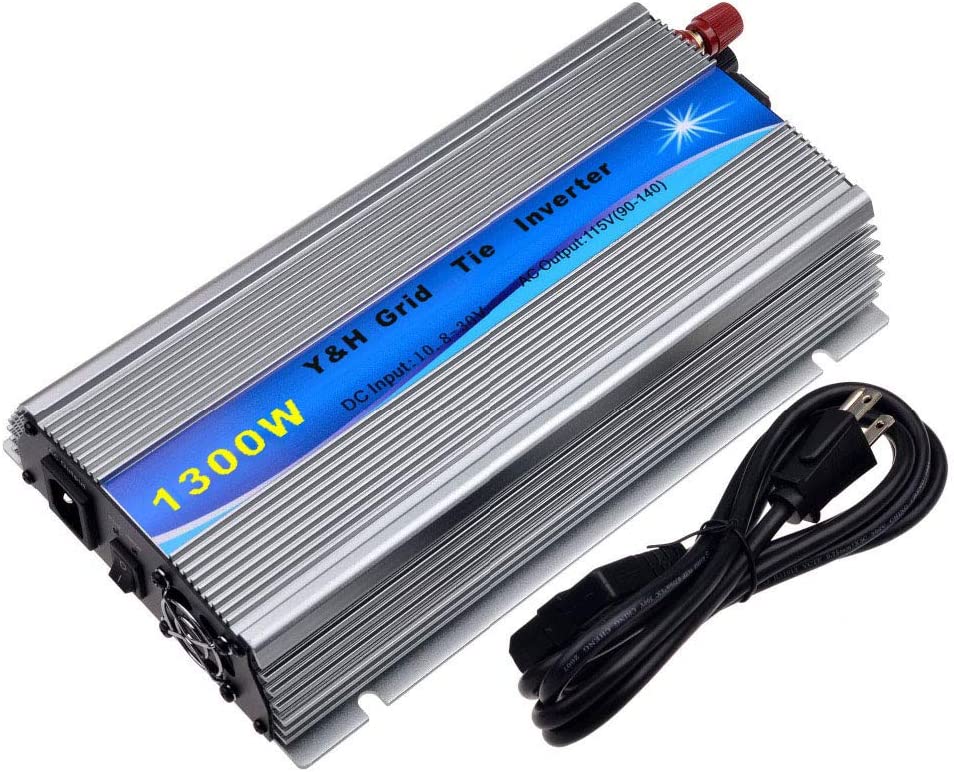 VEVOR Grid Tie Solar Inverter, 1000W MPPT Power Inverter, 50/60 Hz Solar Grid Tie System, Grid Tie Inverter, DC10.8-30V Input to AC90-140V Output Wind Turbine Grid Tie Inverter for Solar Panel System