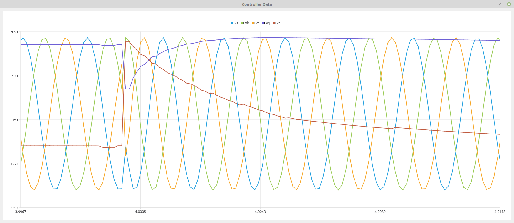 And one more plot. Just noticed the other graph window (one I haven't been showing as it's not normally that interesting), the one that shows the voltages that the controller is generating: