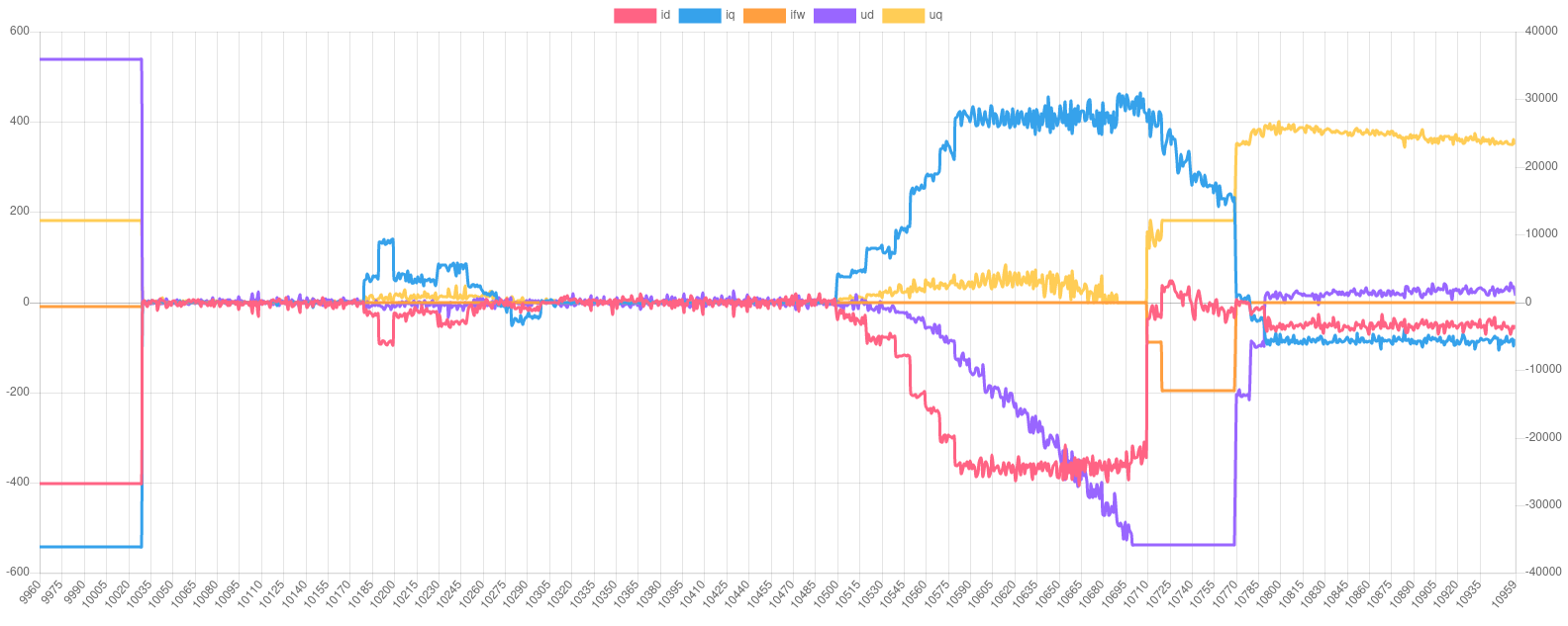 - fw controller starts adding d-current at a total amplitude of 34837