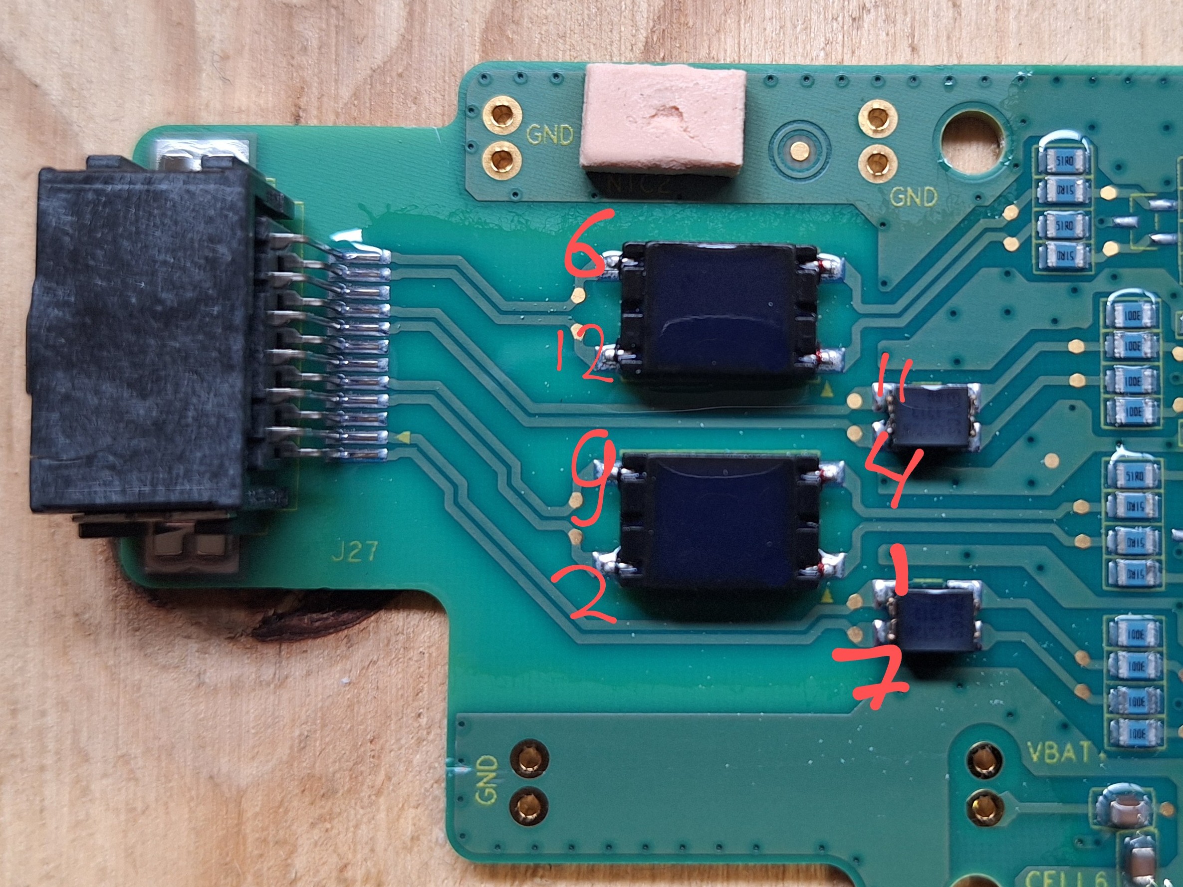 Now onto the cell temperature sensors. each module has three NTC and are not contacted as the MAX chip manufacturer recommends.