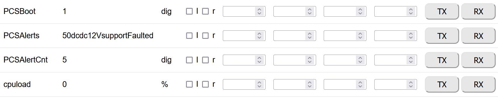 ). The volume of the whine increased over a few seconds then stopped and the PCS shut down the DC-DC. This happened a couple of times and I suspected it might be that the 12V battery was still on the low charge side (alerts: 76dcdcEnDeassertedErr, 67dcdcLvRatuionality, 38claFaulted, 50dcdc12VSupportFaulted). After some restarts I changed udcdc to 14V and the PCS DC-DC worked away happily after that. It did happen once more later on when I was trying to test both DC-DC and Charging at the same time. But happily, DC-DC was working on the bench and I didn't blow anything up!