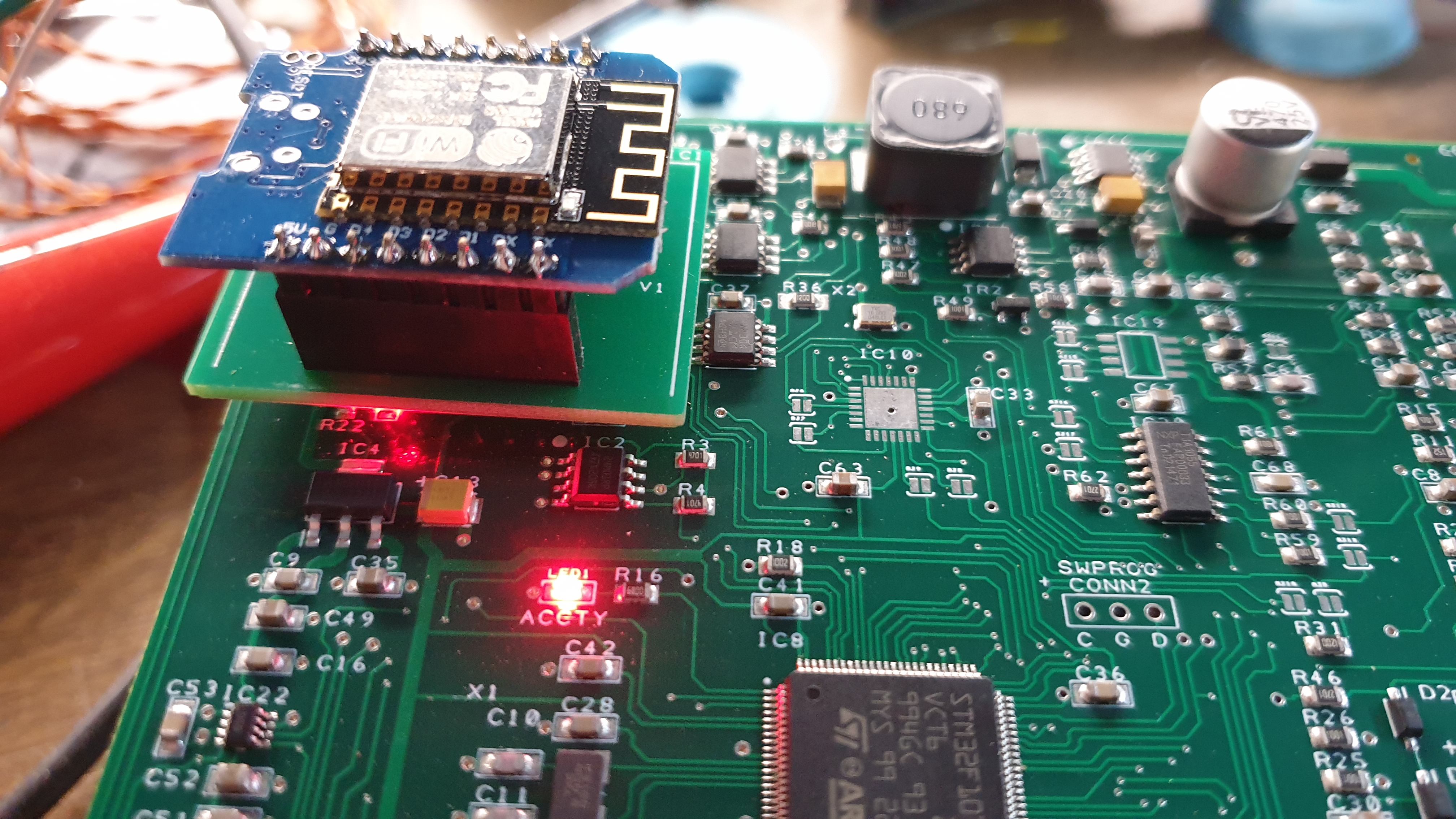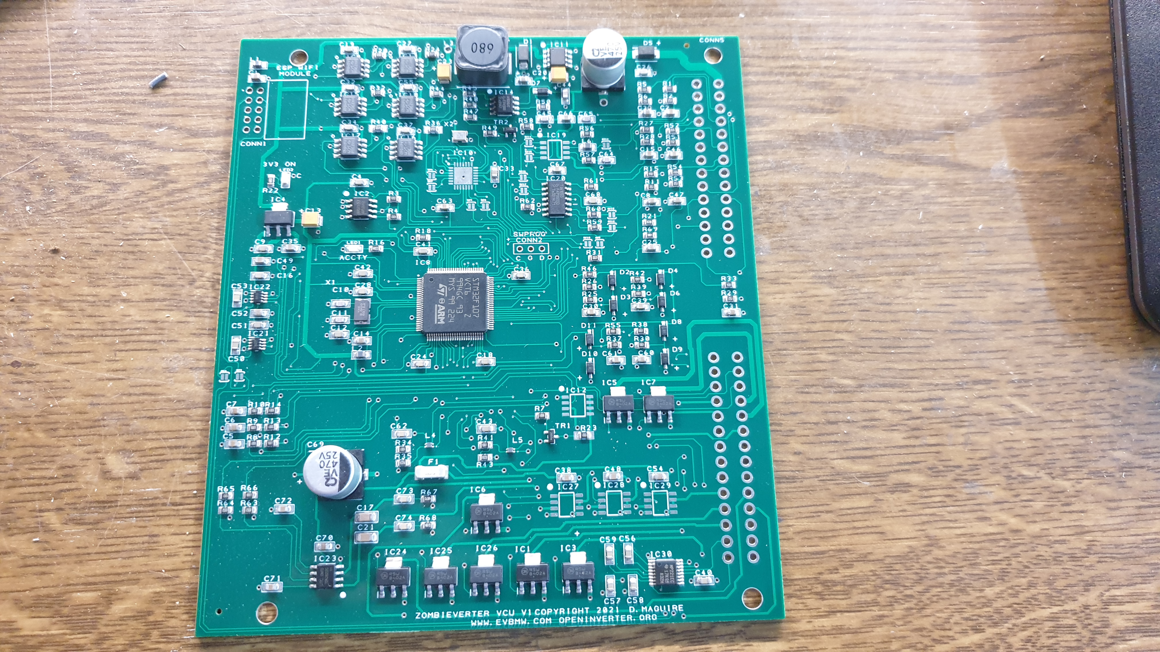 Received today the first batch of VCU board with STM32 and most other parts fitted. Been a long time:) Also Wemos wifi adapter boards received and tested working. Once current batch of Olimex modules are exhausted (and with 50% going in the bin it wont take long!) all kits will ship with Wemos modules and adapter board. We'll give it a few months to bed in then I'll do a design rev to mount the wemos on the pcb directly.