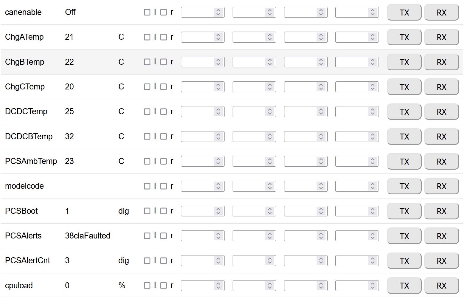 These Olimex wifi modules seem to be getting worse. I am working on that in parallel. Regards activating the DCDC in drive....ooops! Genius here forgot about that one:) Leave it with me a few days. I'm not up on every fault in the pcs but claFaulted is indeed generated by the DCDC so a different 12v battery would be my first port of call. What do your DCDC temperatures look like?