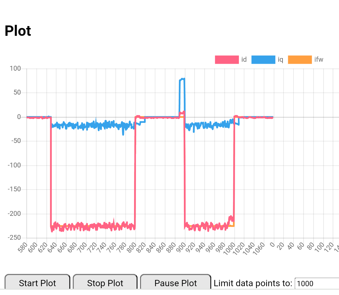 I'll push the new code onto git once it appears to be working (maybe later this week) so I suggest you wait for that as it makes a significant difference in some areas, the main one being above base freq. At the moment I can't work out whether the wLdId term is responsible for field weakening by itself or whether I also need to model the change in flux linkage with Id. What I really need is the full derivation of the motor equations so that I can understand where each term comes from and what effects are included! Thinking about it good quality logged data should also be enough to determine it.