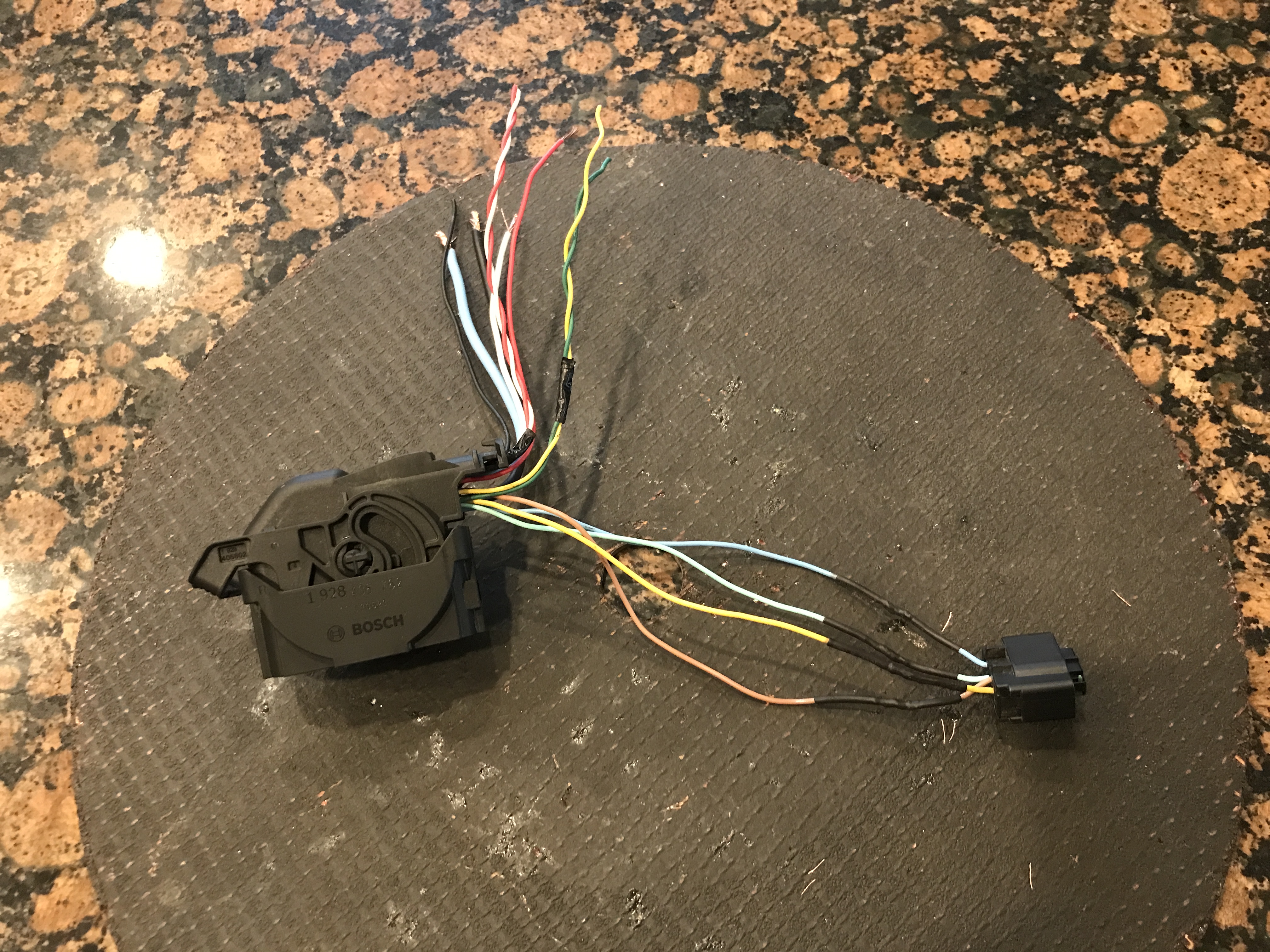 however BOSCH goes out of their way to make a connector so encapsulated that no one can tell which wire goes to where, so The Greg (and don't ask me how I did it) had to liberate the cover off of it to take a peek looksie inside