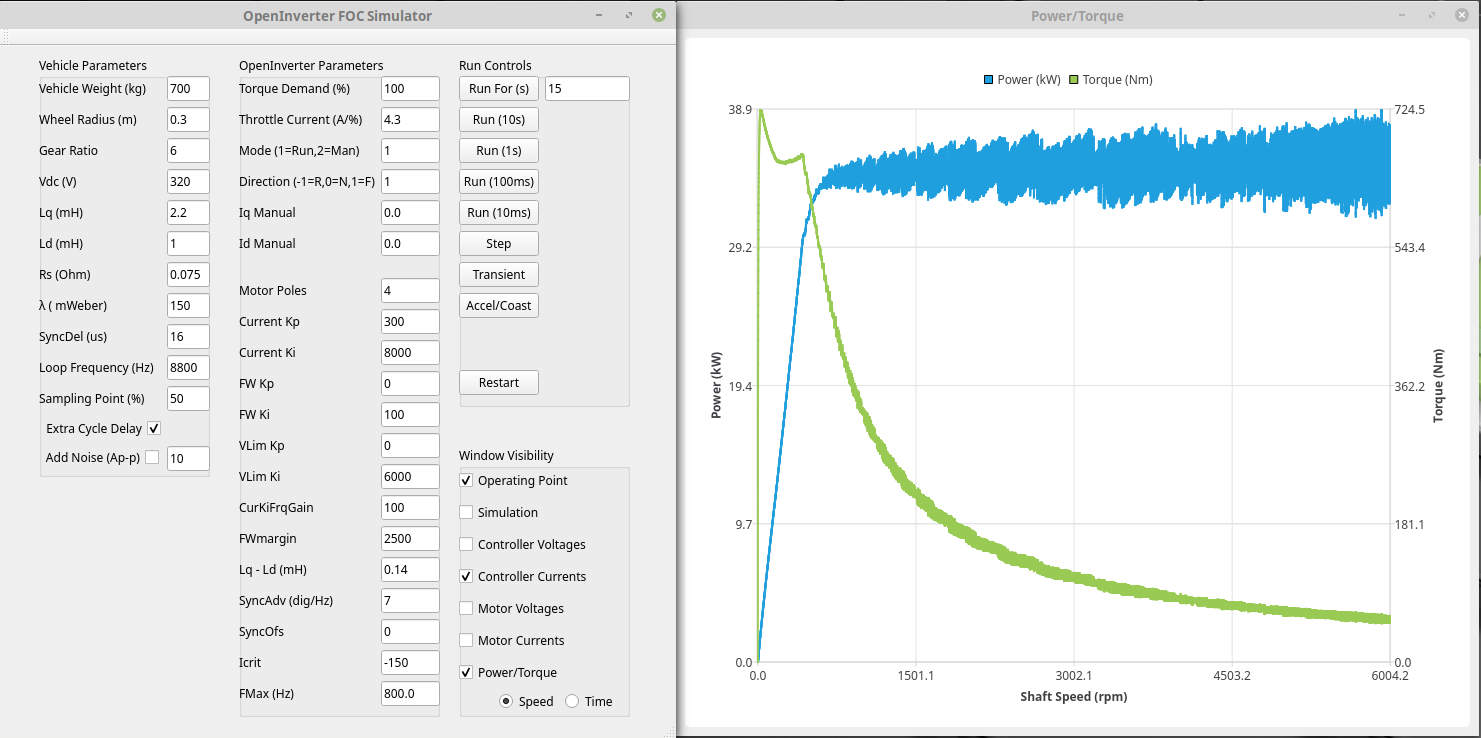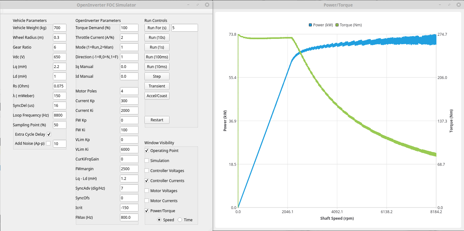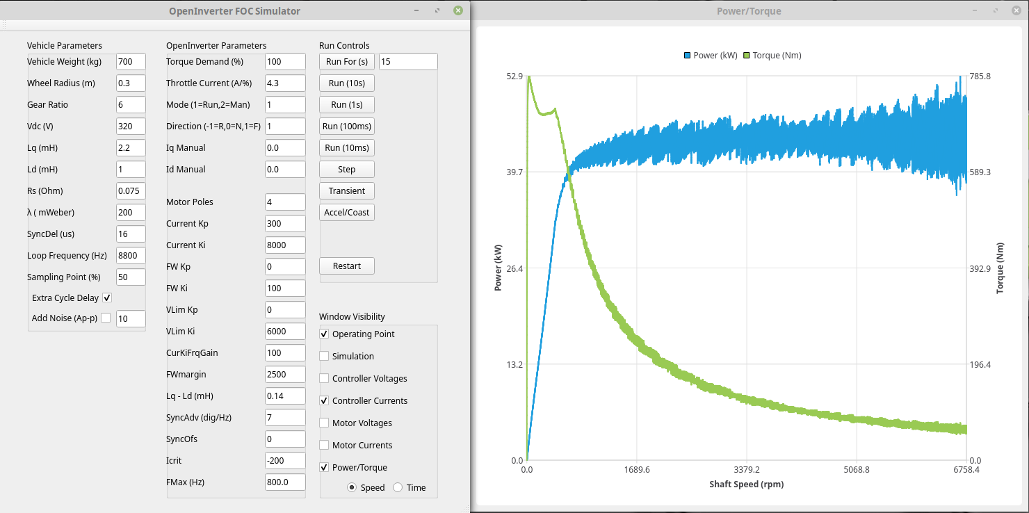 Just added a new power/torque window to the simulator :) Since each plot I add slows it down (a 10sec simulation was taking 30sec to render) I've also made it so that you can select which plots are shown/processed; with a couple of windows up the same run only takes a couple of seconds.