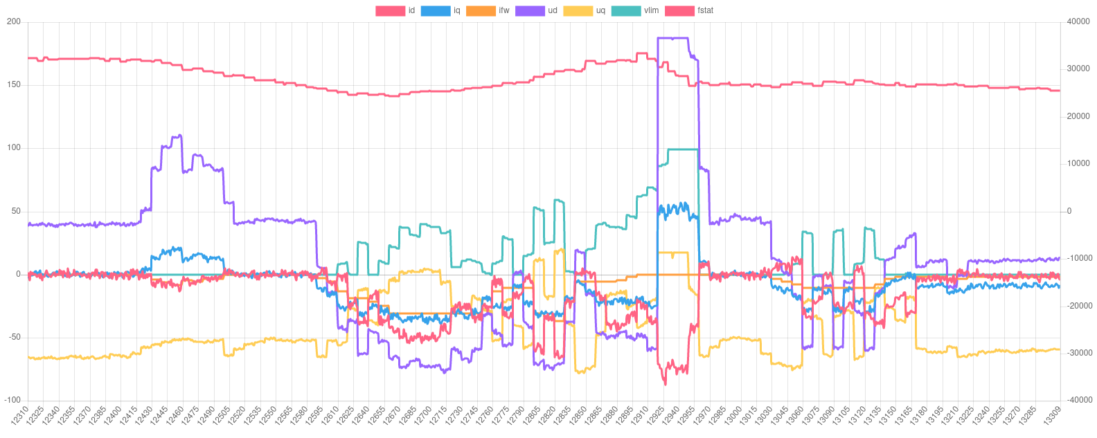 Did you try different values for flux linkage, that changes the base freq quite a bit. Just to check, you're not mistaking the transition from constant torque to constant power as being the same as base freq are you?johu wrote: ↑Mon Oct 31, 2022 6:38 pm Have been playing with the simulator pretty much all day. Not quite sure it represents reality quite yet, for example the Leaf motor (provided the parameters are right) jumps into FW way to early, around 2000 rpm or so. In general it seems harder to get the simulated controller to play nice than it is in the car. Will post more once I have some harder data on the differences.