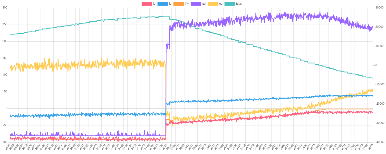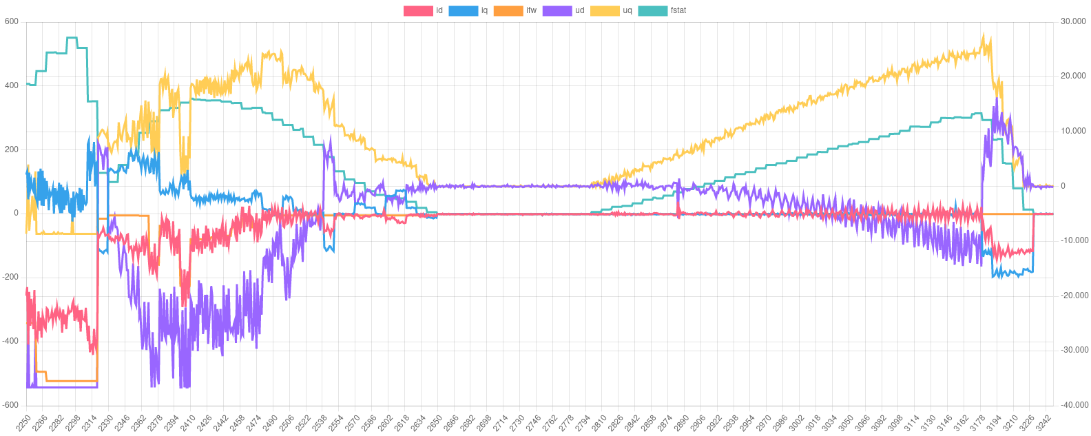 You can even see the DC current limit working as speed decreases iq increases. I have posted the parameters here https://openinverter.org/parameters/view.html?id=29