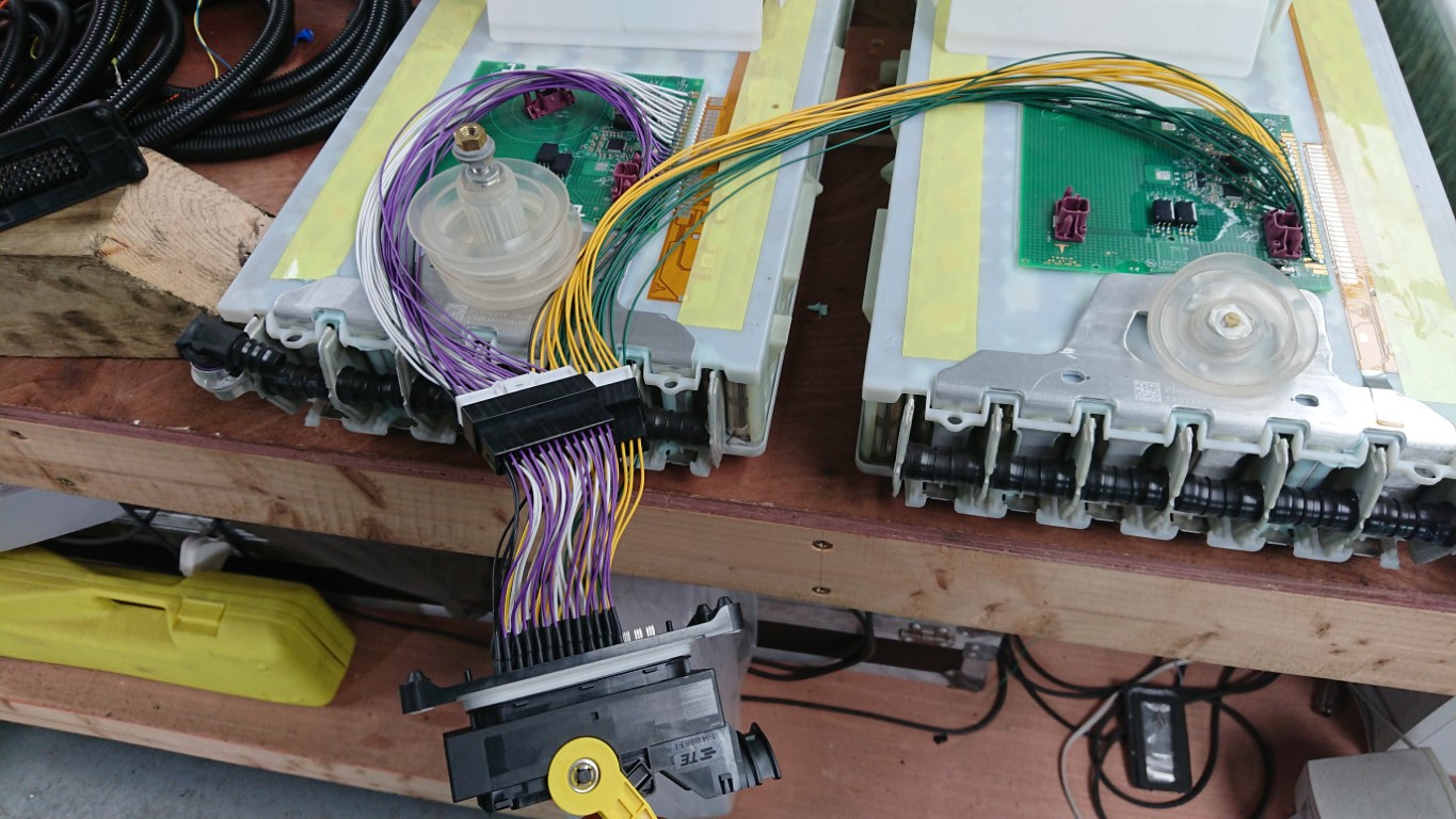 Two modules per battery box, so each has its own connector to aid fitting and removing. These will connect to a TE Connectivity Leavyseal connector for each battery box