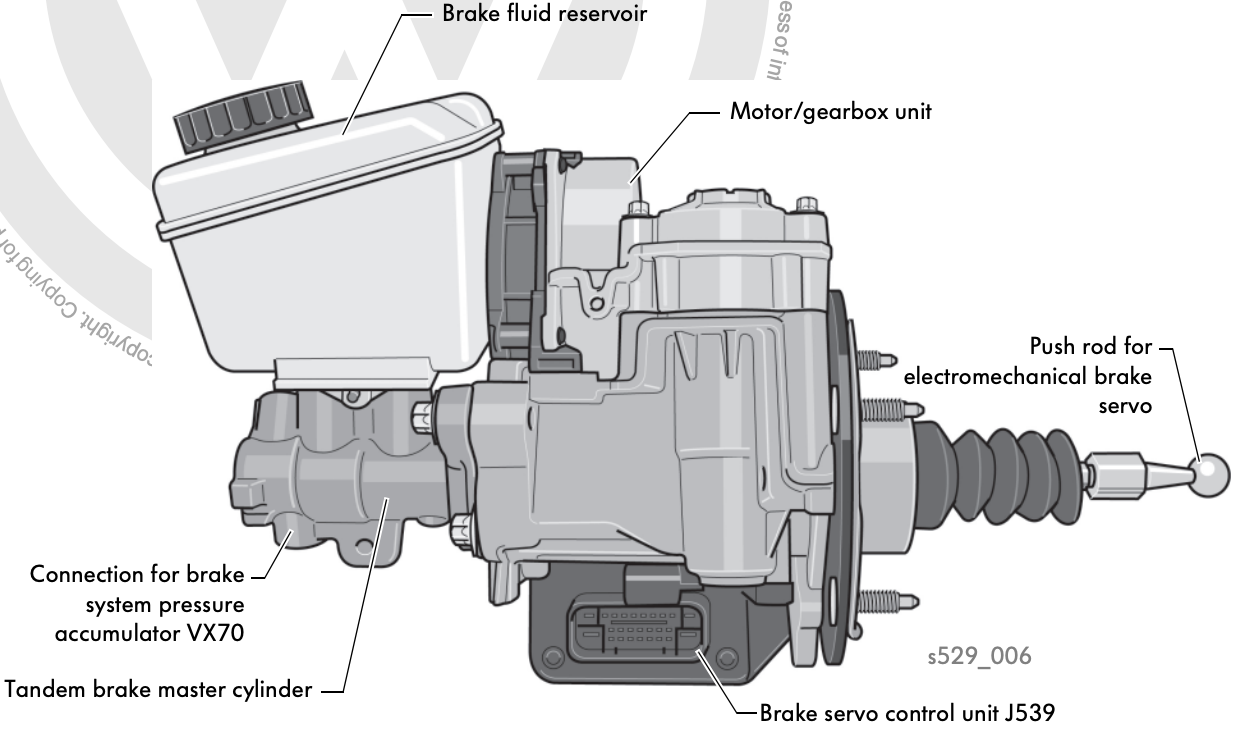 Pressure Accumulator "Smart Actuator" - There is also a brake accumulator module that ties into the 2nd port on the Brake Master Cyl. Some cars have this, others do not. I'm trying to find out what VCDS coding is responsible for this.