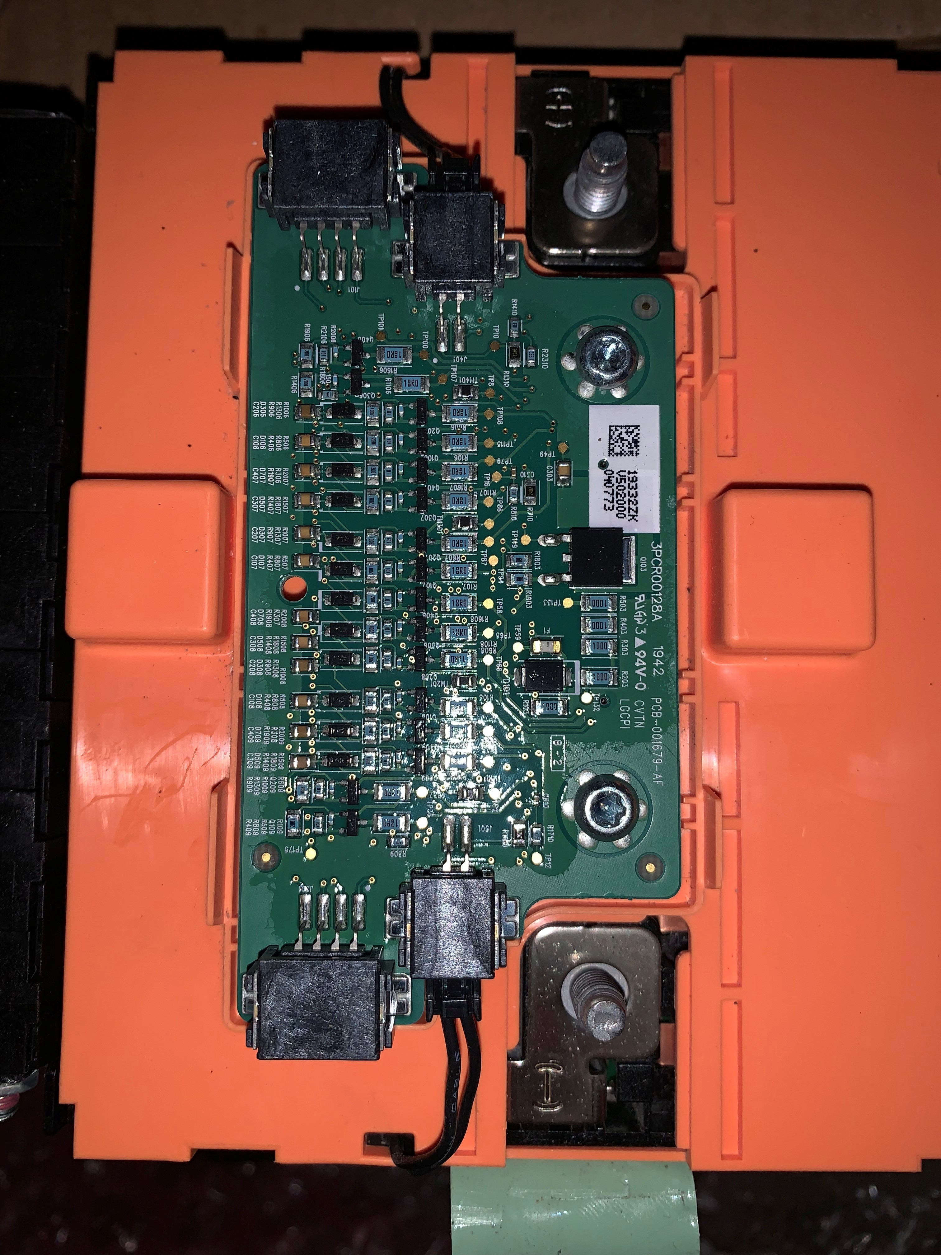 Sorry for not being clear on this, but the EMC filter that I am referring to is a big junk of HV passives cased in a sheet metal enclosure and potted in resin. The filter connects on one side to the HVB+ and HVB- and on the other side to the DC-link+ and DC-link-. The complete battery current runs through this filter.catphish wrote: ↑Tue Jan 03, 2023 2:32 pm This is good news and extremely interesting! My design already includes common mode chokes, and I saw significant improvements by adding an Ethernet transformer, but I guess the OEM did it better! If you have any more detailed information about this filter I'd be interested.