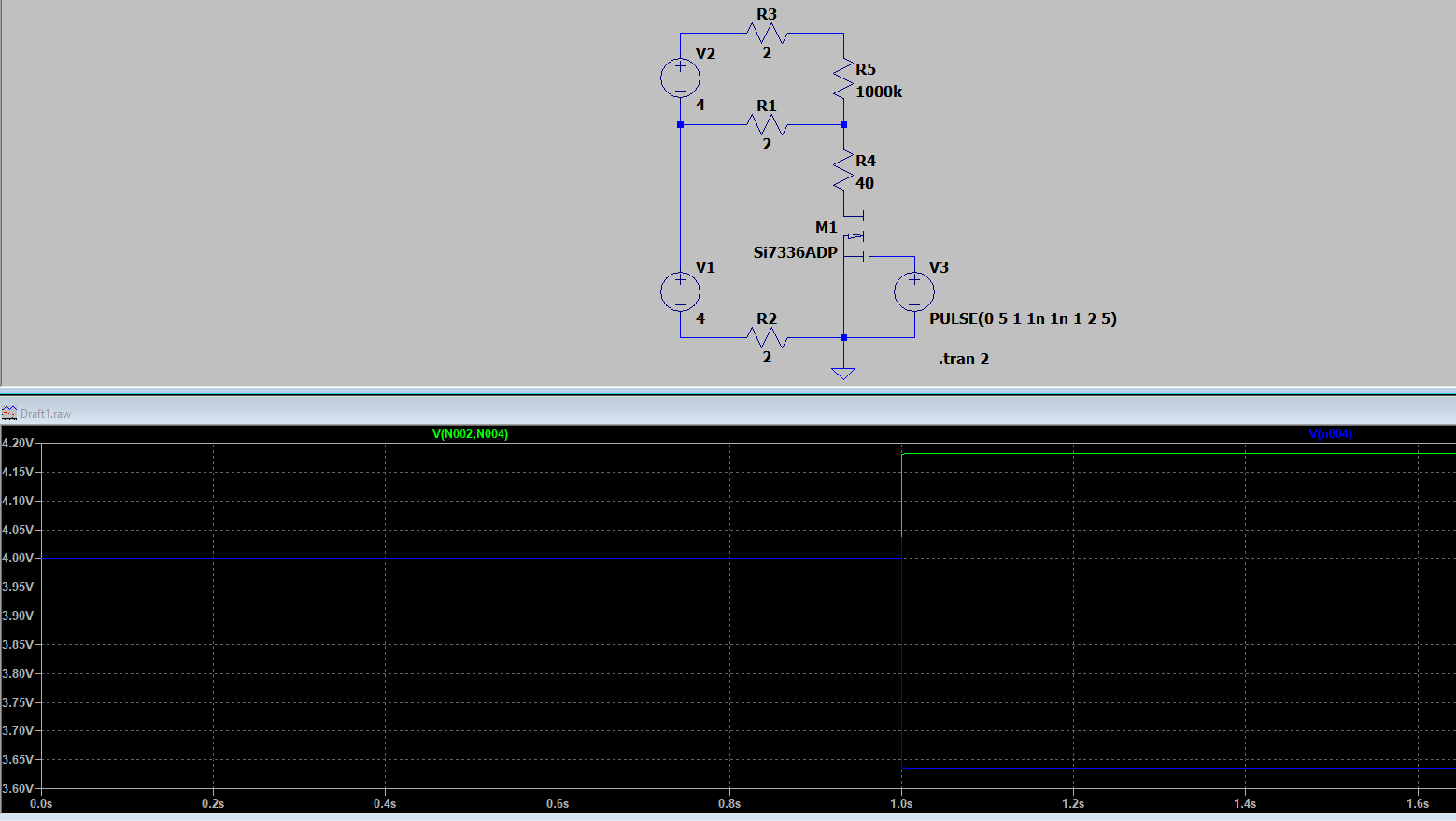 This all might be highly hardware related and I have not even checked (as of yet) how small a value for the delay I can actually get away with, but just wanted to share my finding. V1=4V and V2=4V are the simulated cell voltages. Resistors R1, R2 and R3 represent the series resistances of the FPC copper tracks. As the balancing is enabled across V1 at 1s, the measured V1 drops below 3650mV while the measured V2 rises above 4180mV.
